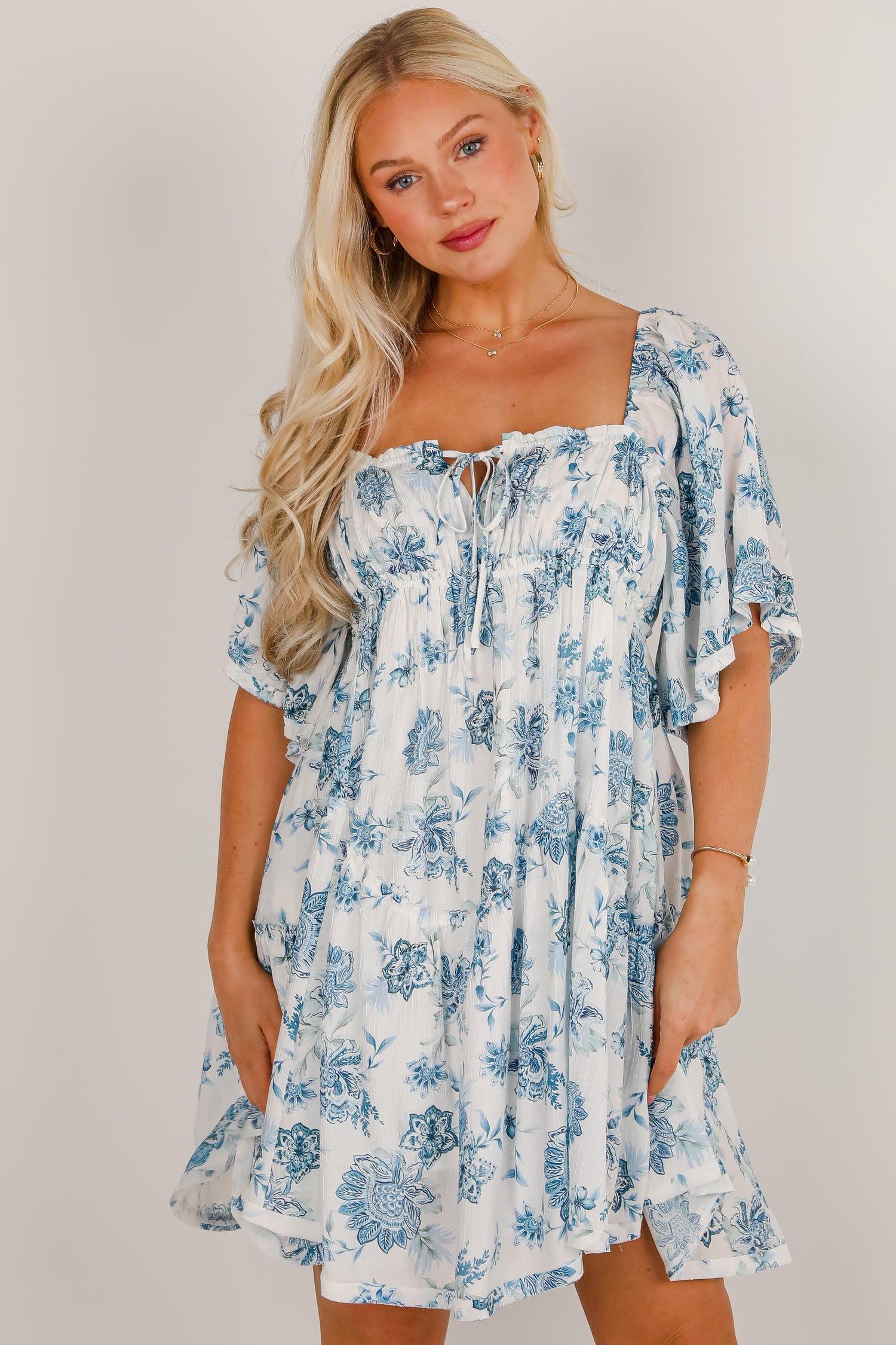Celebrate the occasion in an exceptional manner when you arrive in the Memorably Iconic White Floral Mini Dress! Featuring a crisp white base adorned with soft blue florals, this dress exudes effortless charm and feminine flair. The flattering mini length keeps it playful, while the lightweight fabric makes it perfect for warm weather outings. Dress it up with heels for brunch or keep it casual with sneakers or sandals—either way, it’s a go-to piece for easy, breezy style!