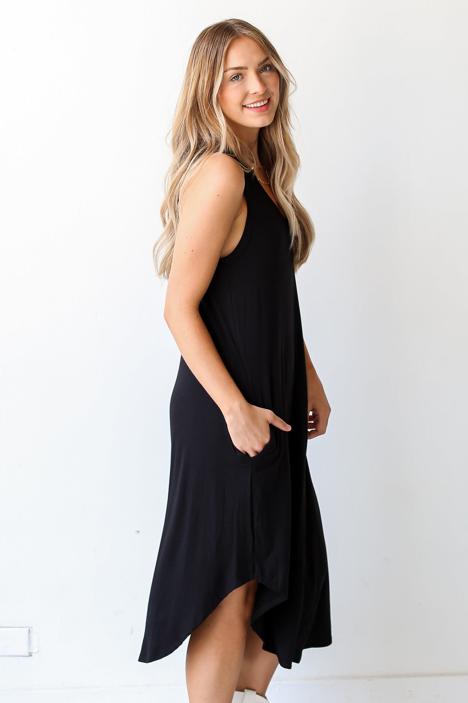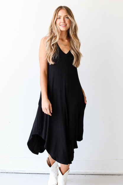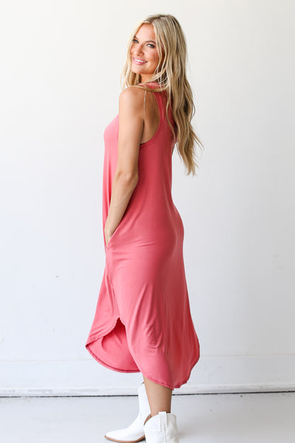 The My One Wish Midi Dress is a dream come true! This comfy dress is made of a soft and stretchy jersey knit. It features a v-neckline, a sleeveless bodice, and a relaxed fit that ends in midi length with a split scoop hem. It also has side pockets! Style the My One Wish Midi Dress with a straw hat and sandals for an easy summer look! Available in 2 colors.