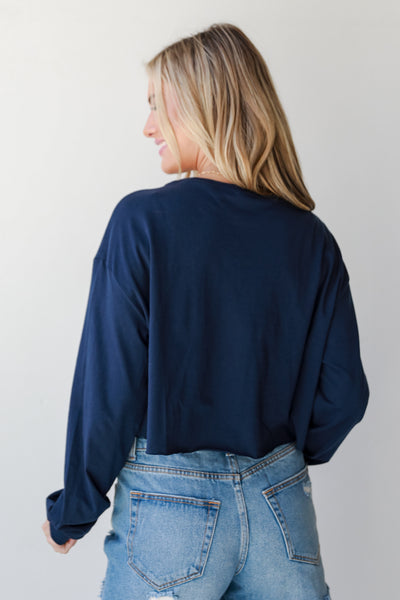 Navy Atlanta Baseball Cropped Long Sleeve Tee back view