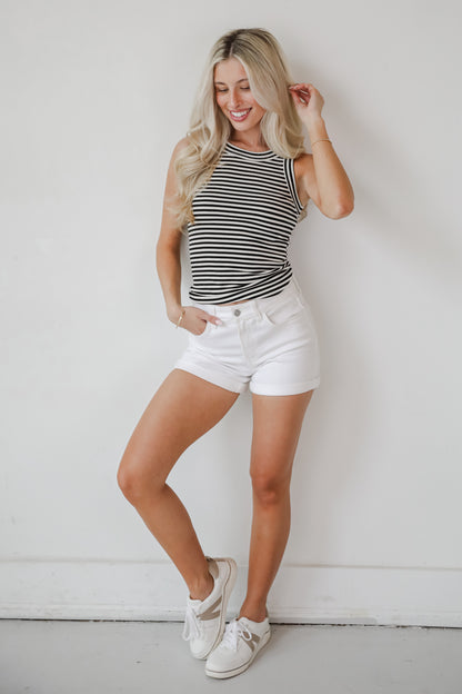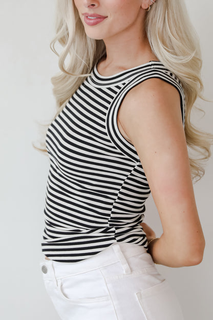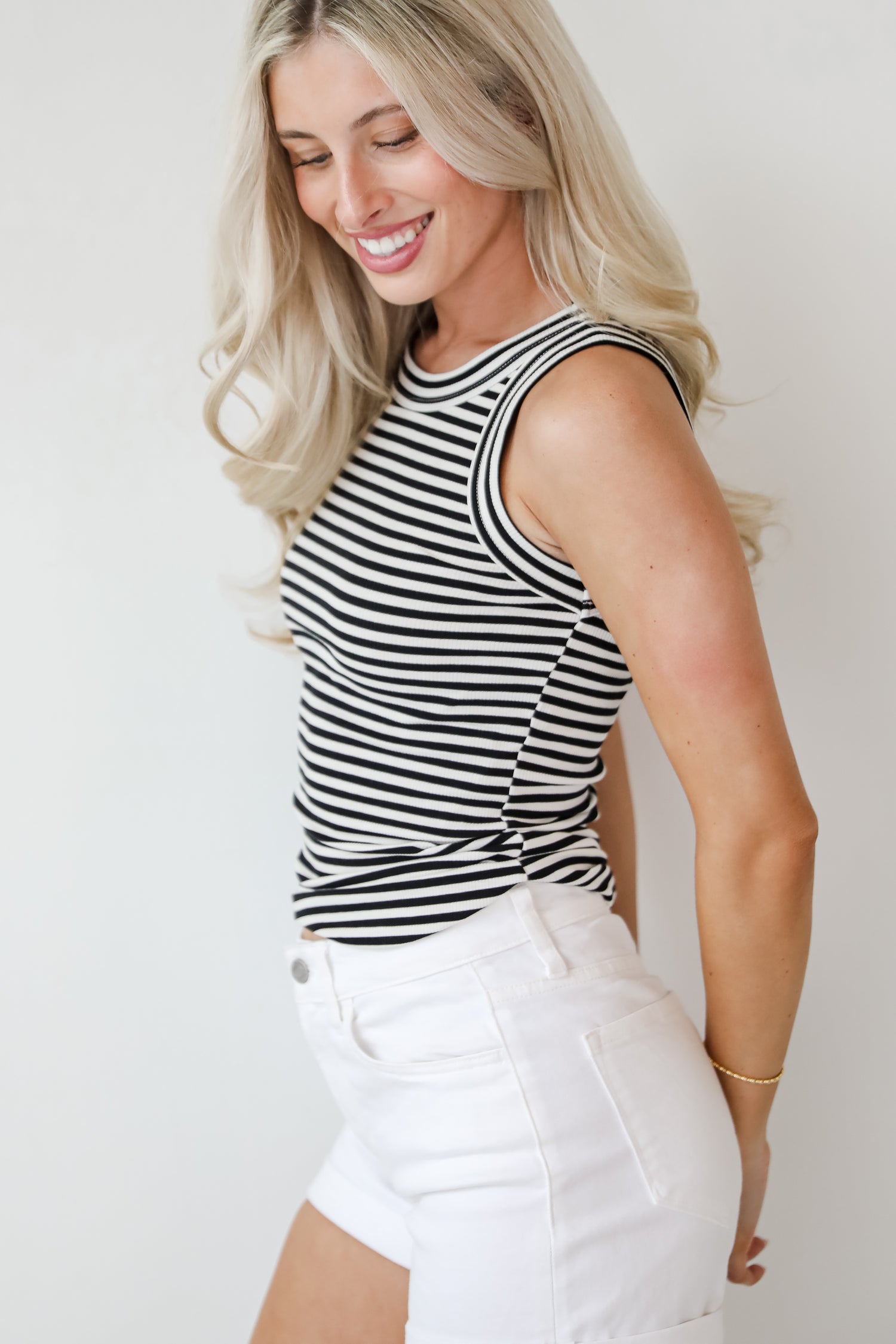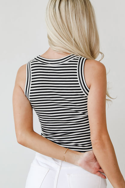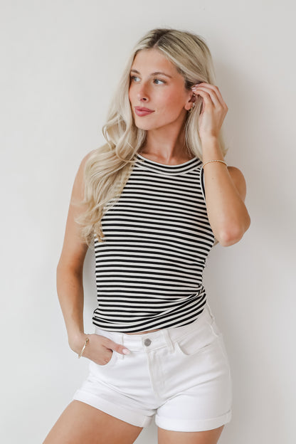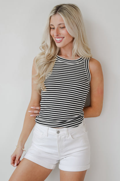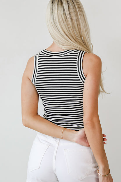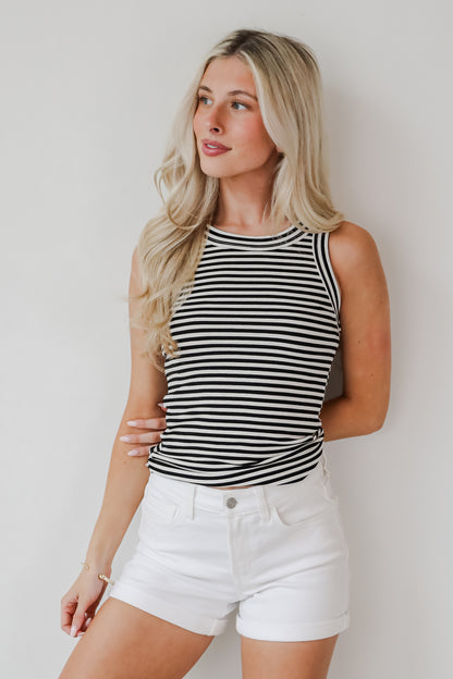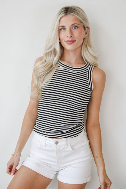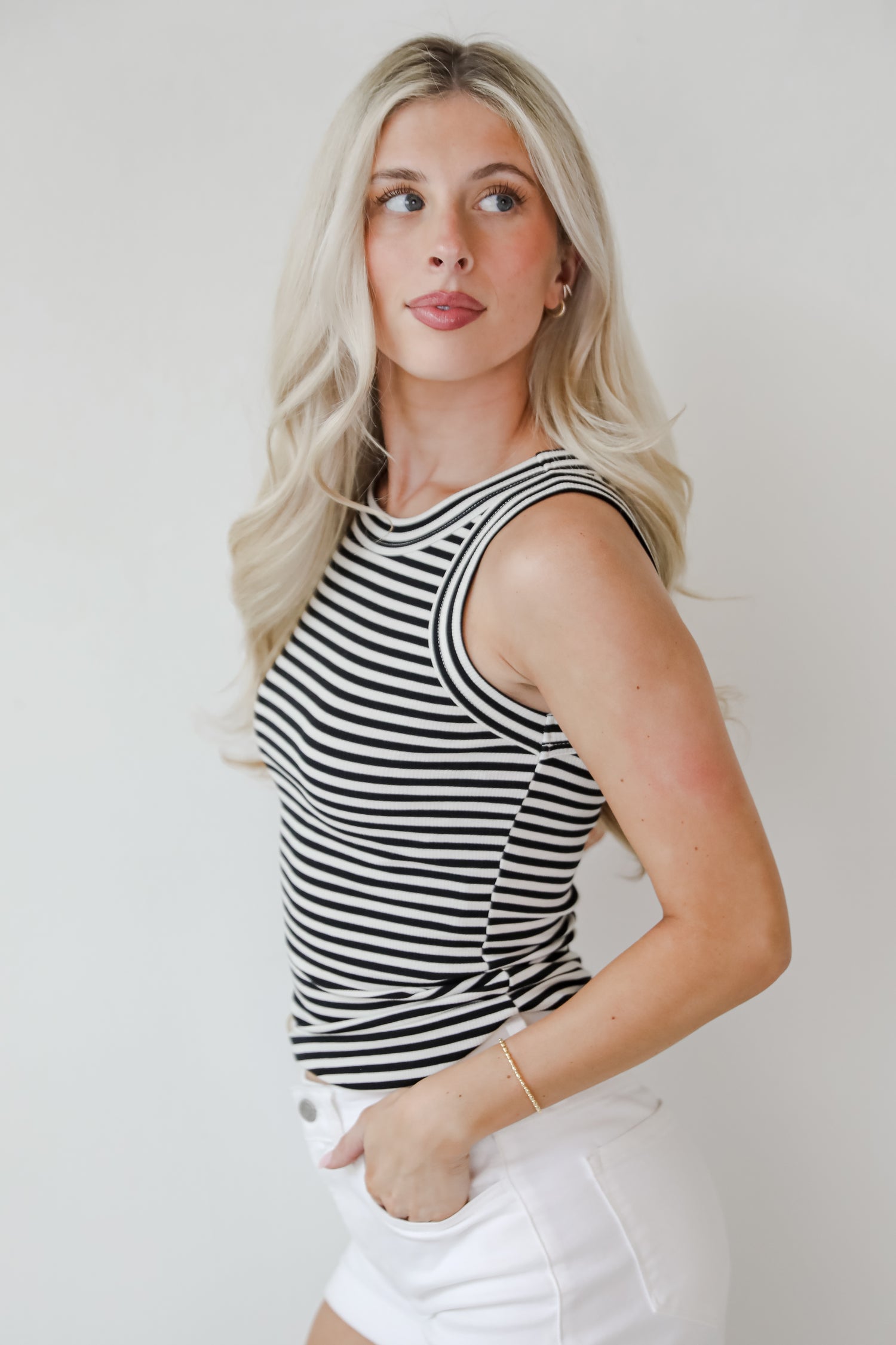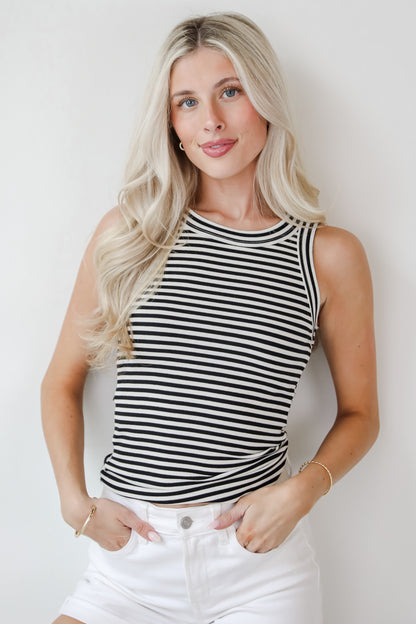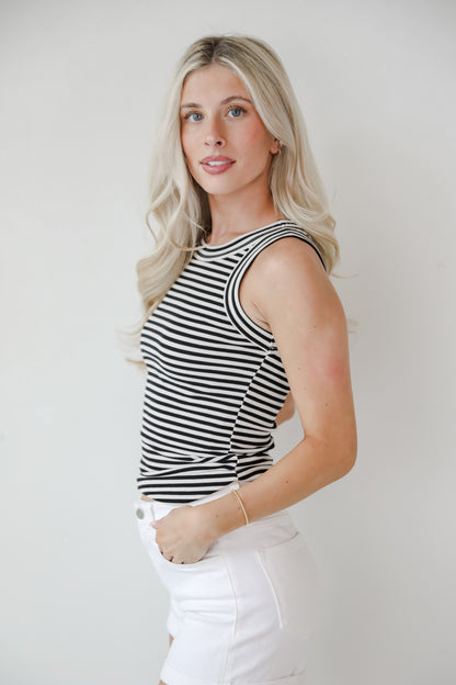 The Nicole Everyday Black Striped Tank is the perfect blend of classic and casual! Featuring bold black and white stripes, this tank offers a flattering, relaxed fit that’s perfect for layering or wearing on its own. Made from soft, breathable fabric, it’s designed for comfort all day long. Whether you pair it with denim, shorts, or skirts, this versatile tank adds a chic, effortless vibe to any outfit. A must-have wardrobe essential for effortless style, whether you're out running errands or enjoying a casual day out!