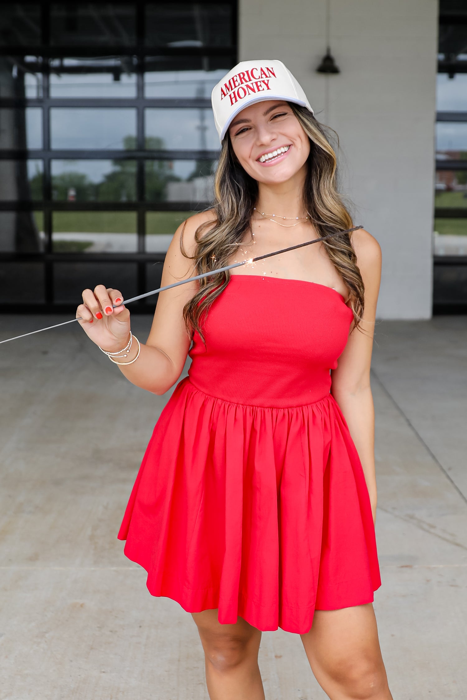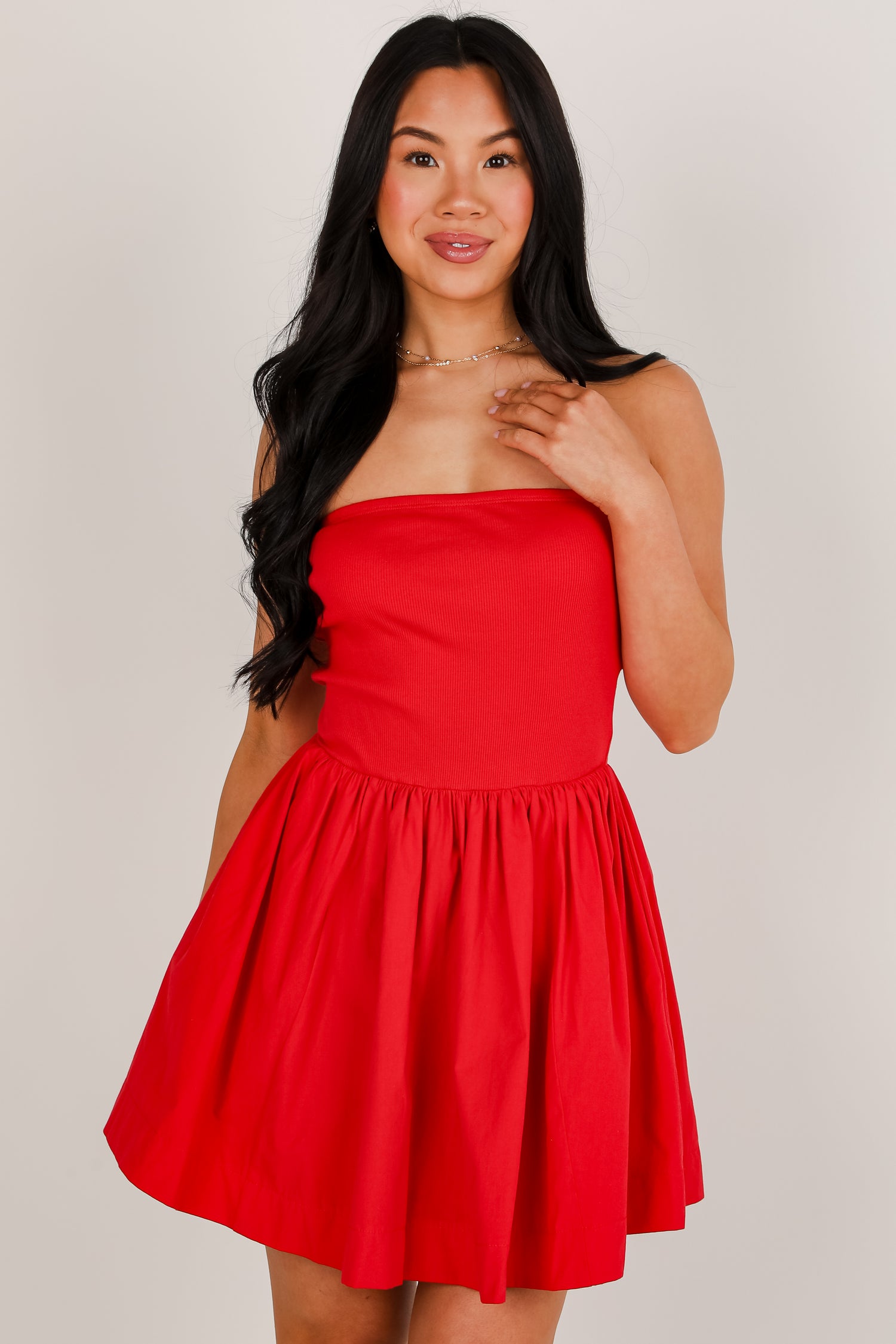 FINAL SALE - Off To The Fireworks Red Contrast Strapless Mini Dress
