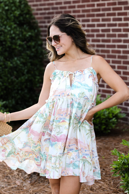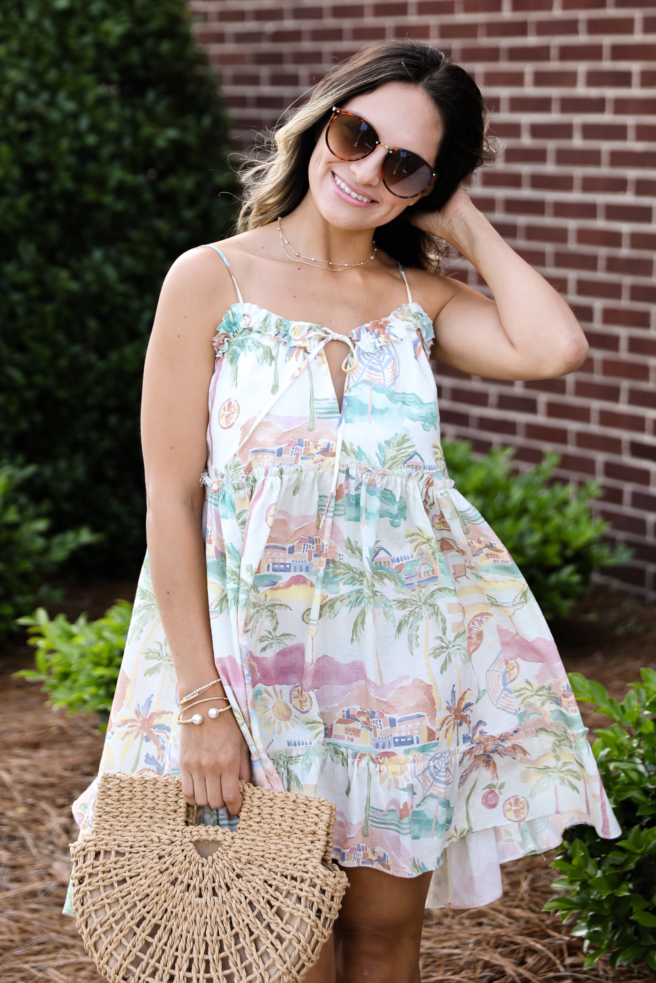 FINAL SALE - Paradise Awaits Cream Tropical Mini Dress