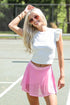 Stay cool, confident, and on the move in the Record Setter Mesh Athletic Skort—where function meets feminine flair. Designed with breathable mesh fabric and built-in shorts for added coverage, this skort is perfect for everything from tennis matches to running errands. The flowy outer layer adds a flirty touch, while the wide waistband keeps it comfy and secure. Just pair it with your favorite tank or tee for an effortlessly active look! Available in 2 colors.
