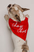 If your pets are baseball fans, the Red Chop Chop Script Dog Bandana was made just for them! This cute bandana is designed with a lightweight cotton material with "Chop Chop" on it and a functional tie.