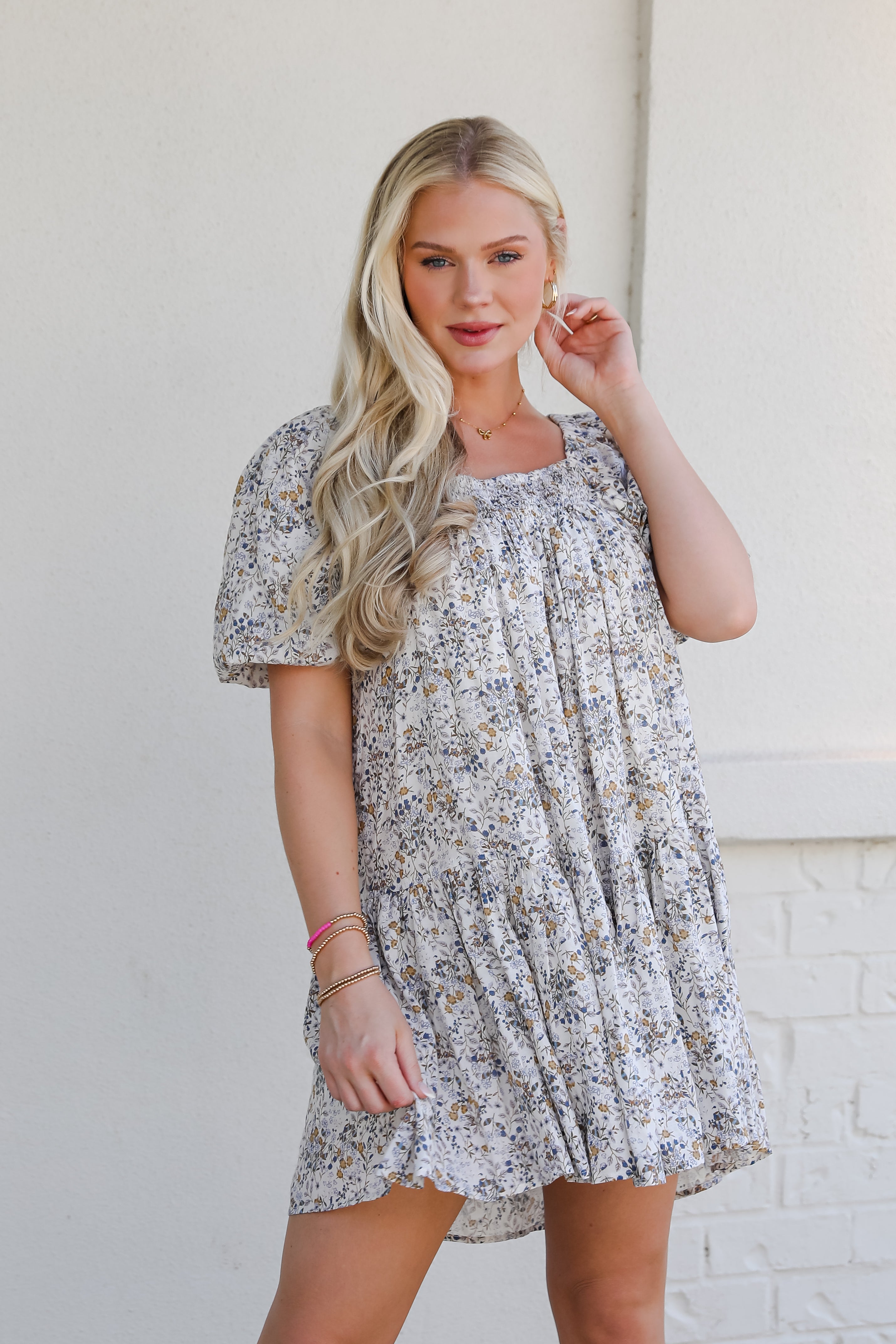 The Rise Above Ivory Floral Mini Dress features plenty of details that are absolutely mesmerizing! Adorned with a delicate floral print on an ivory backdrop, this dress features charming puff sleeves that add a touch of vintage-inspired flair. The mini length keeps the look fresh and flirty, while the lightweight fabric ensures all-day comfort. Whether you're dressing up for a brunch date or strolling through a garden, this floral mini is your go-to for effortless elegance!