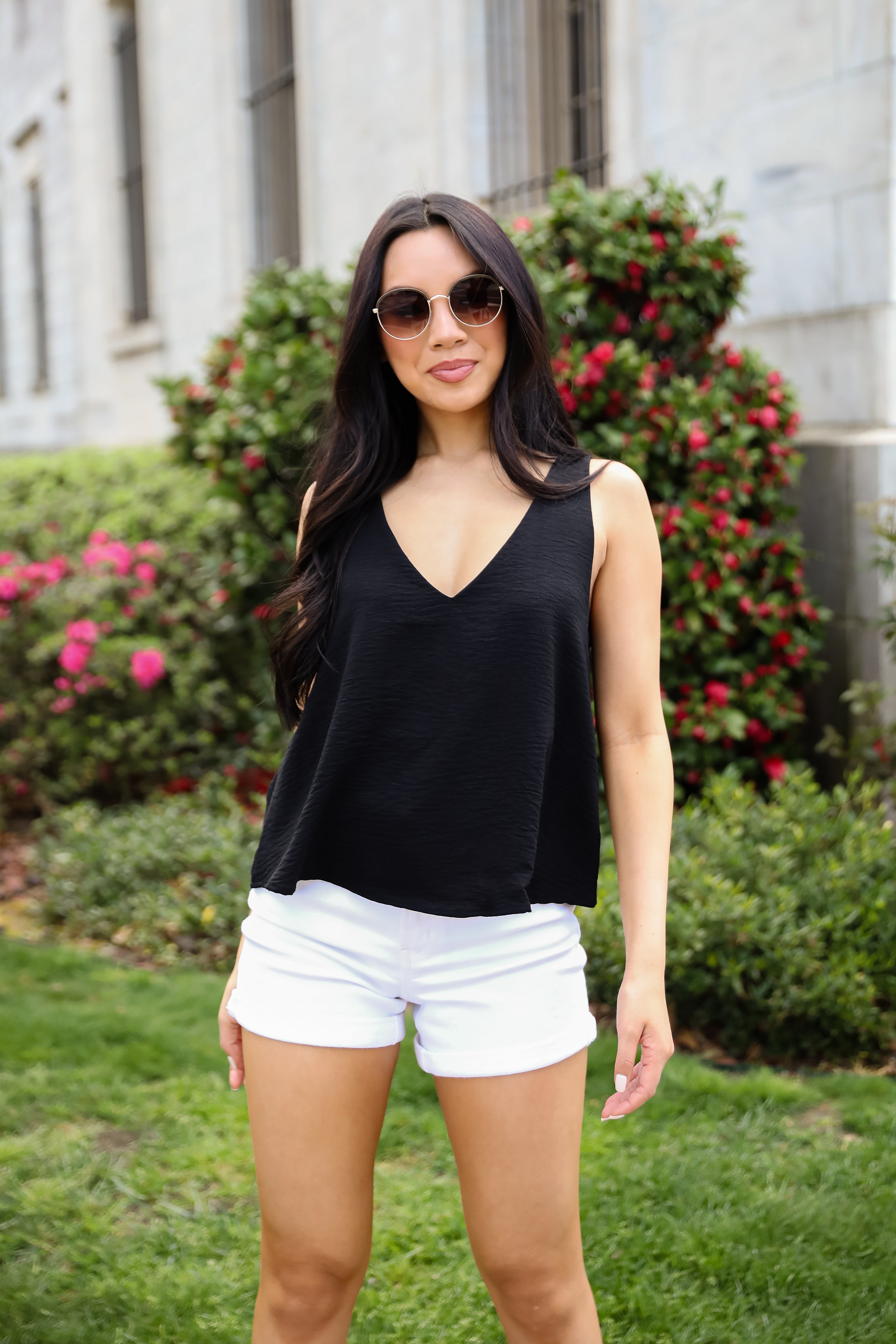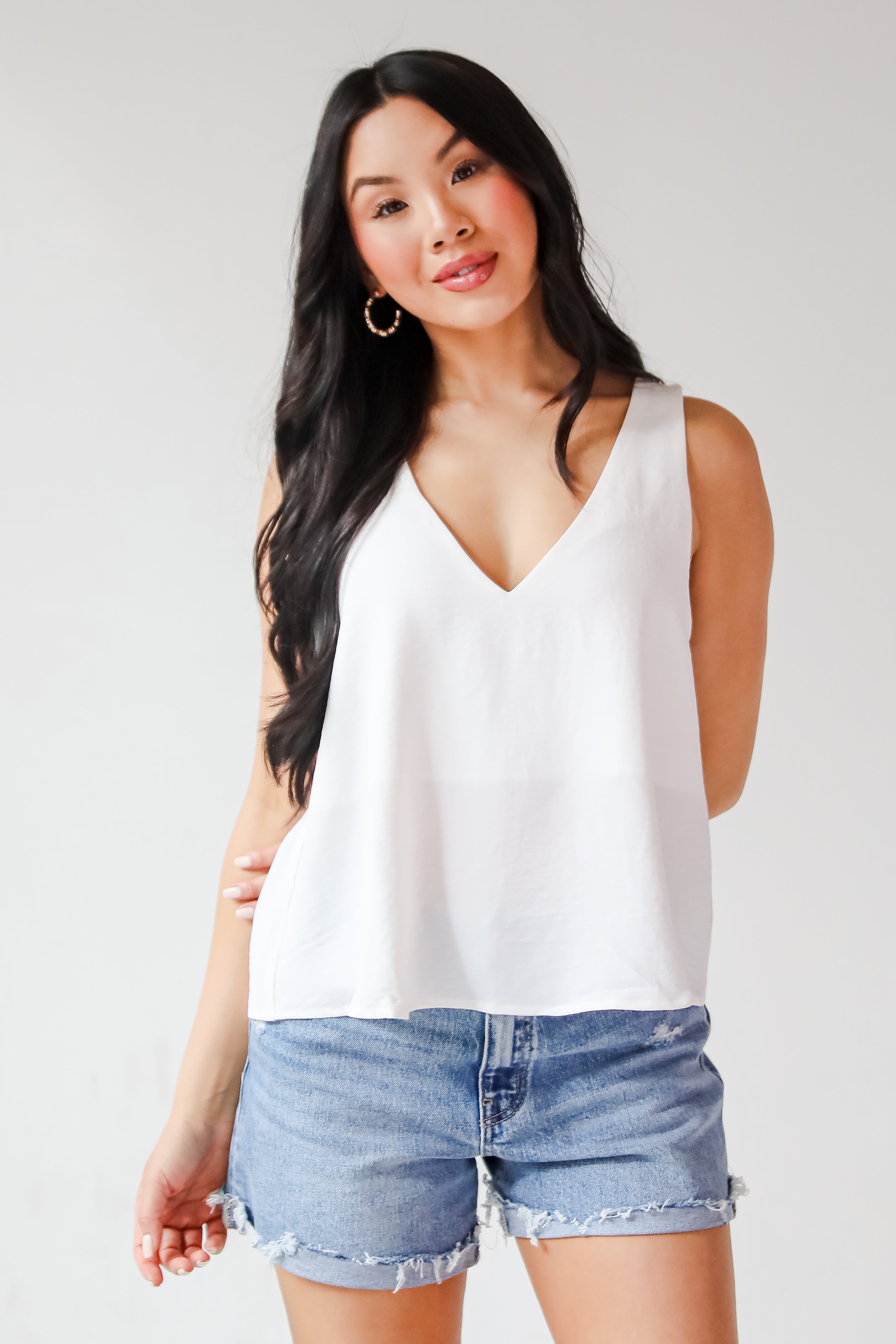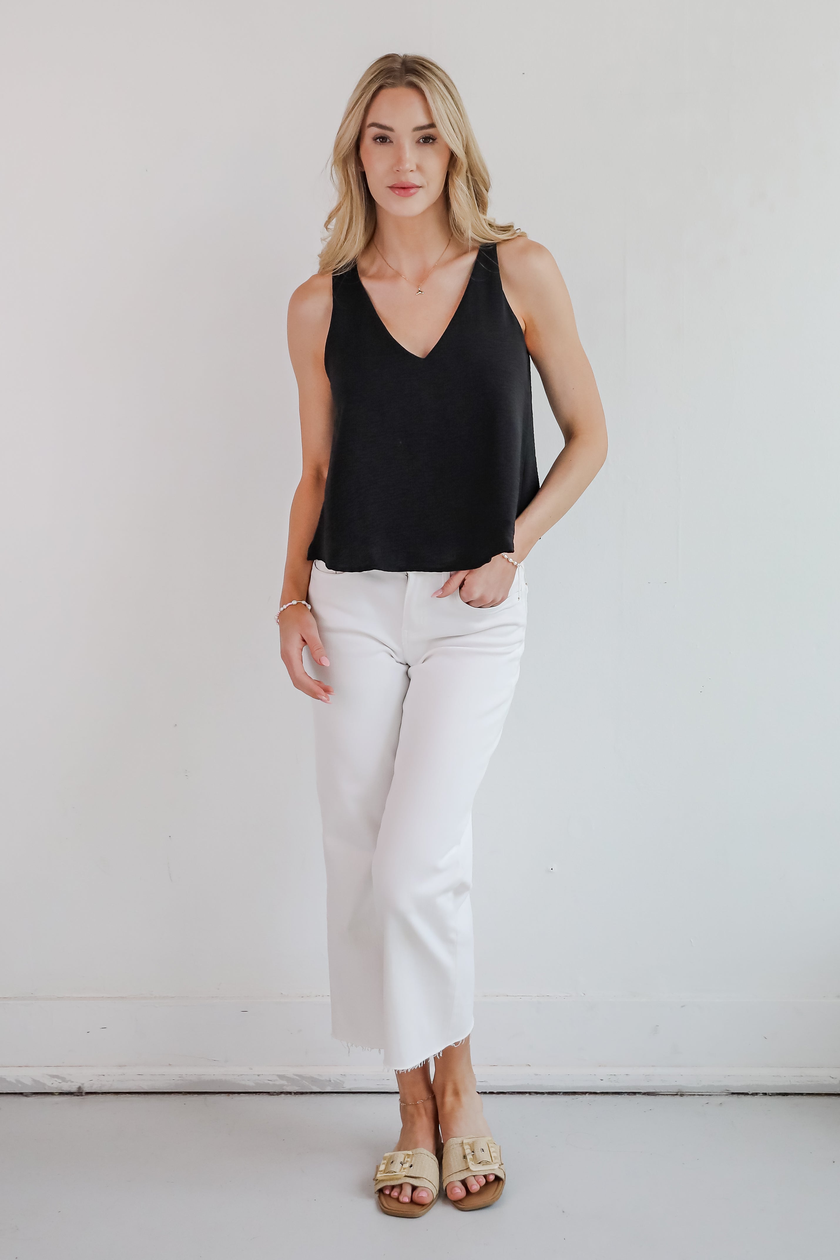 The Sabrina Everyday Tank is a must-have staple for every wardrobe! Designed with a relaxed silhouette and a flattering V-neckline, it drapes beautifully for an easy, breezy fit. The lightweight fabric makes it perfect for layering or wearing solo on warmer days. Whether you’re dressing it up with a blazer or keeping it casual with denim shorts, this tank brings timeless style and everyday comfort to any look! Available in 3 colors.
