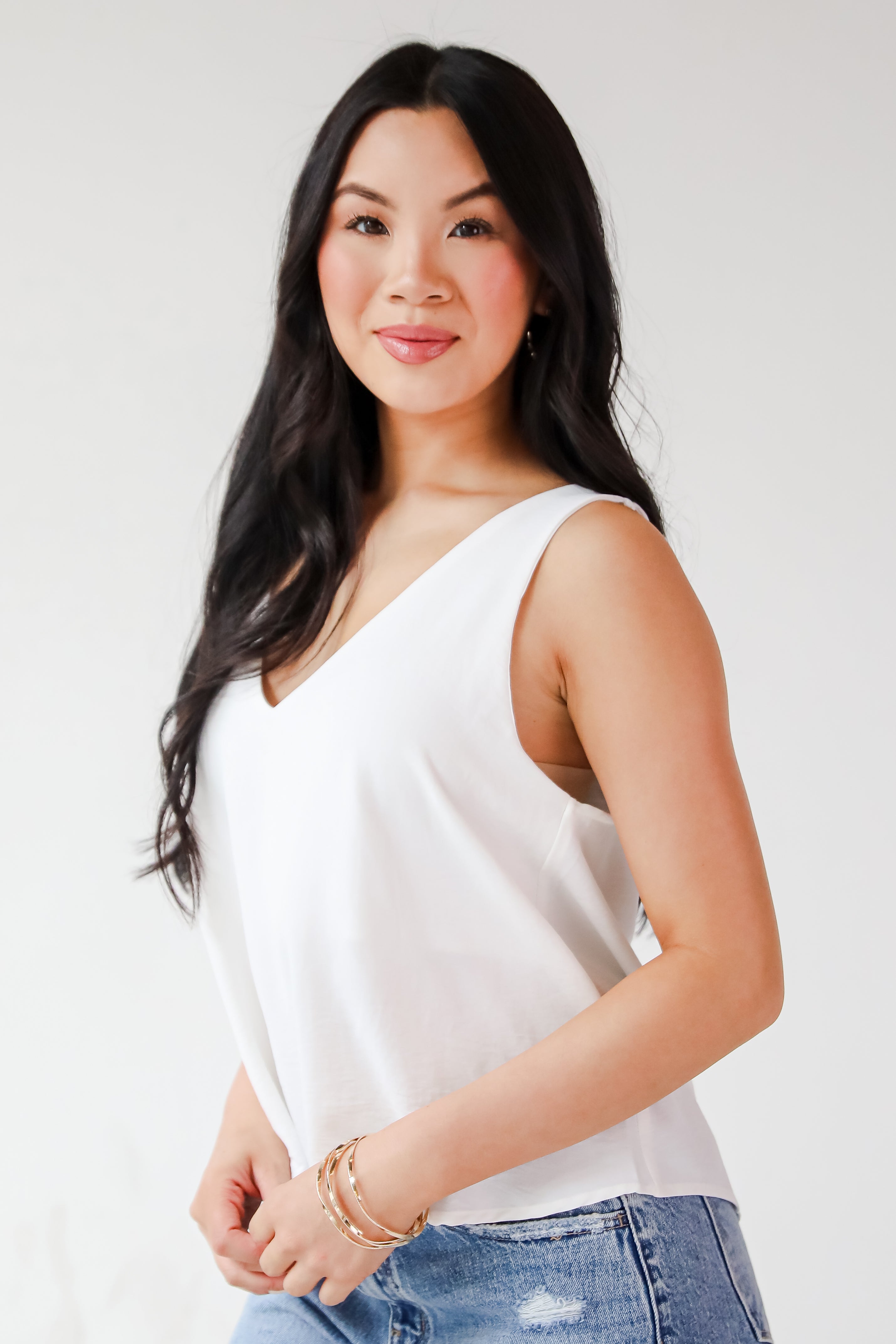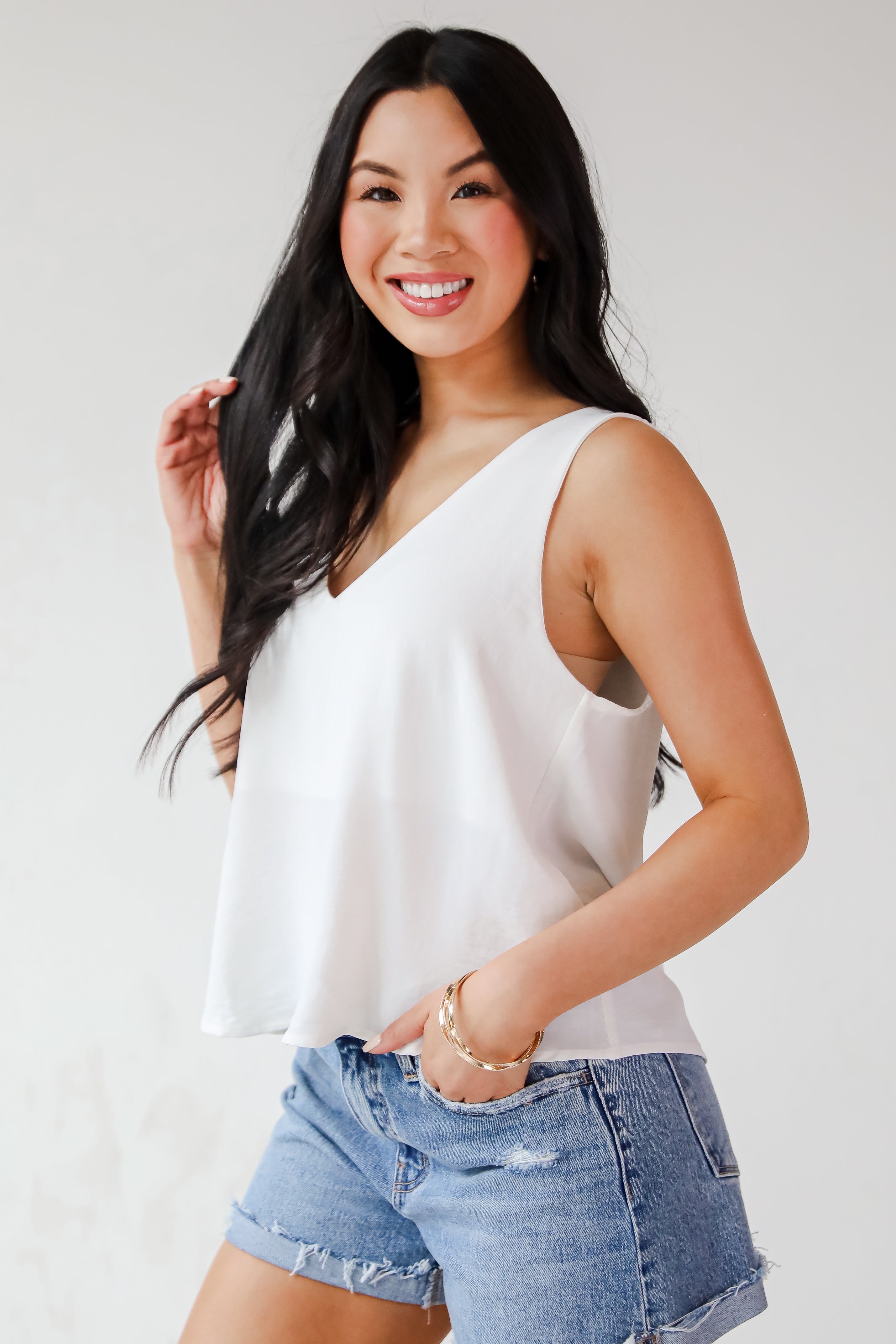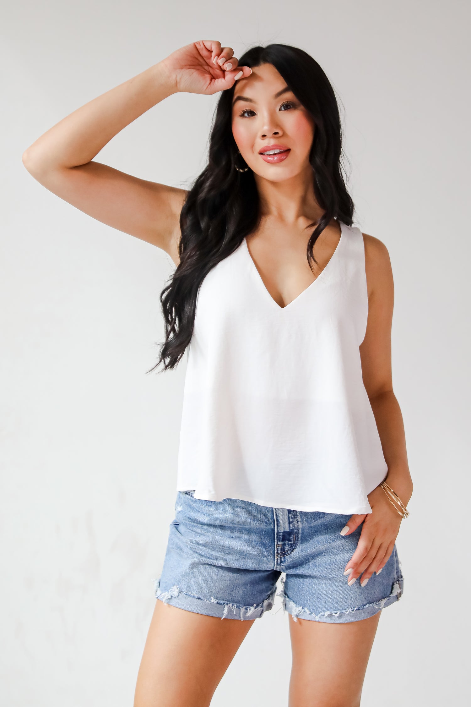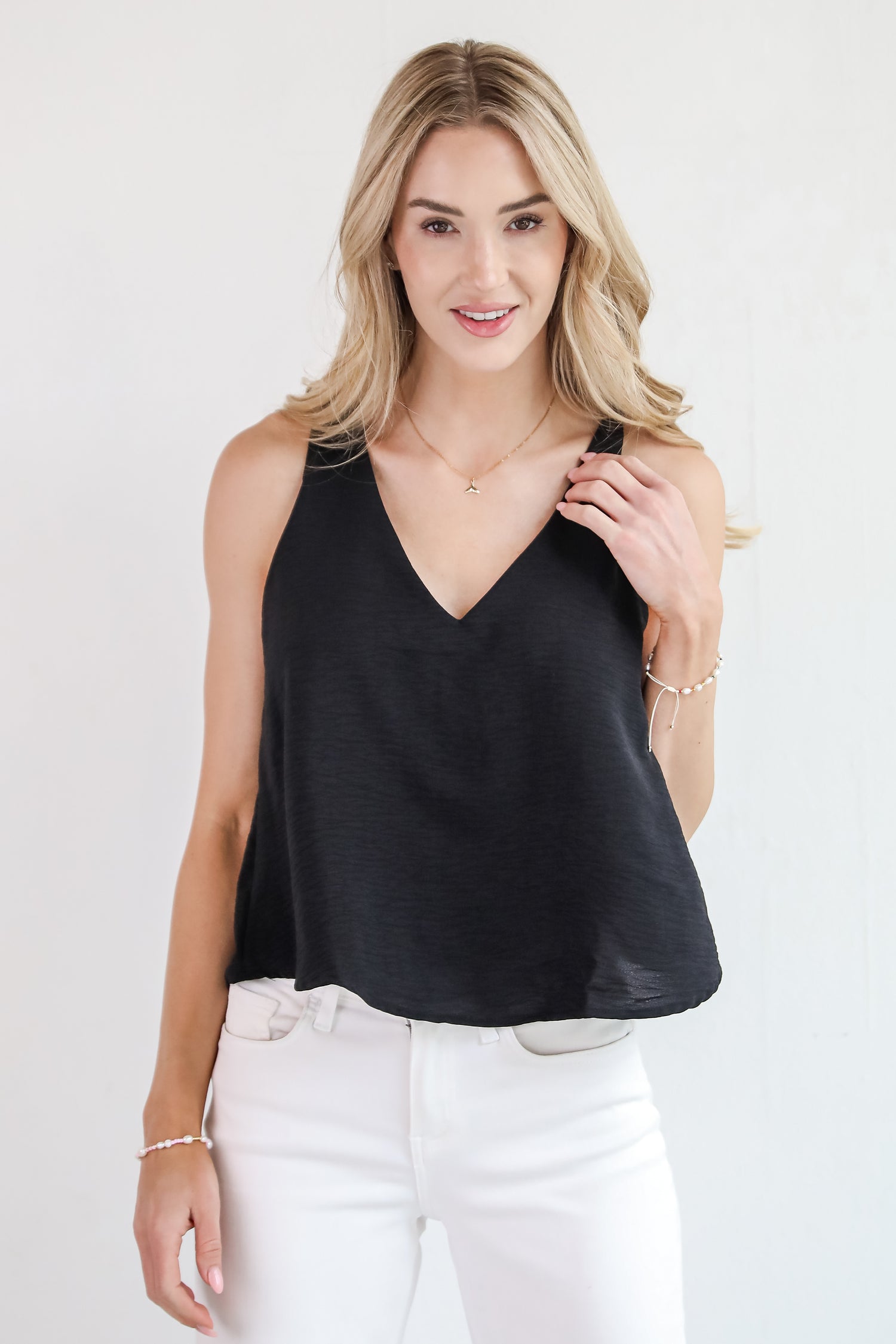 The Sabrina Everyday Tank is a must-have staple for every wardrobe! Designed with a relaxed silhouette and a flattering V-neckline, it drapes beautifully for an easy, breezy fit. The lightweight fabric makes it perfect for layering or wearing solo on warmer days. Whether you’re dressing it up with a blazer or keeping it casual with denim shorts, this tank brings timeless style and everyday comfort to any look! Available in 3 colors.