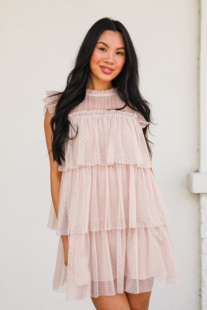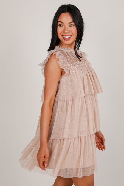 FINAL SALE - So Dreamy Nude Tulle Tiered Mini Dress