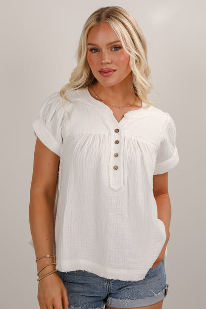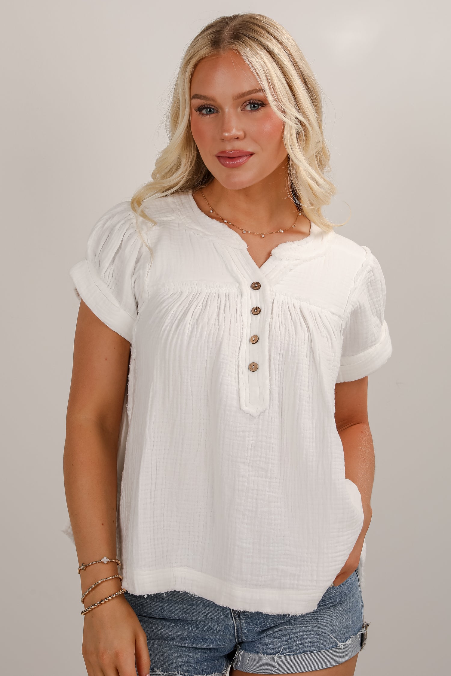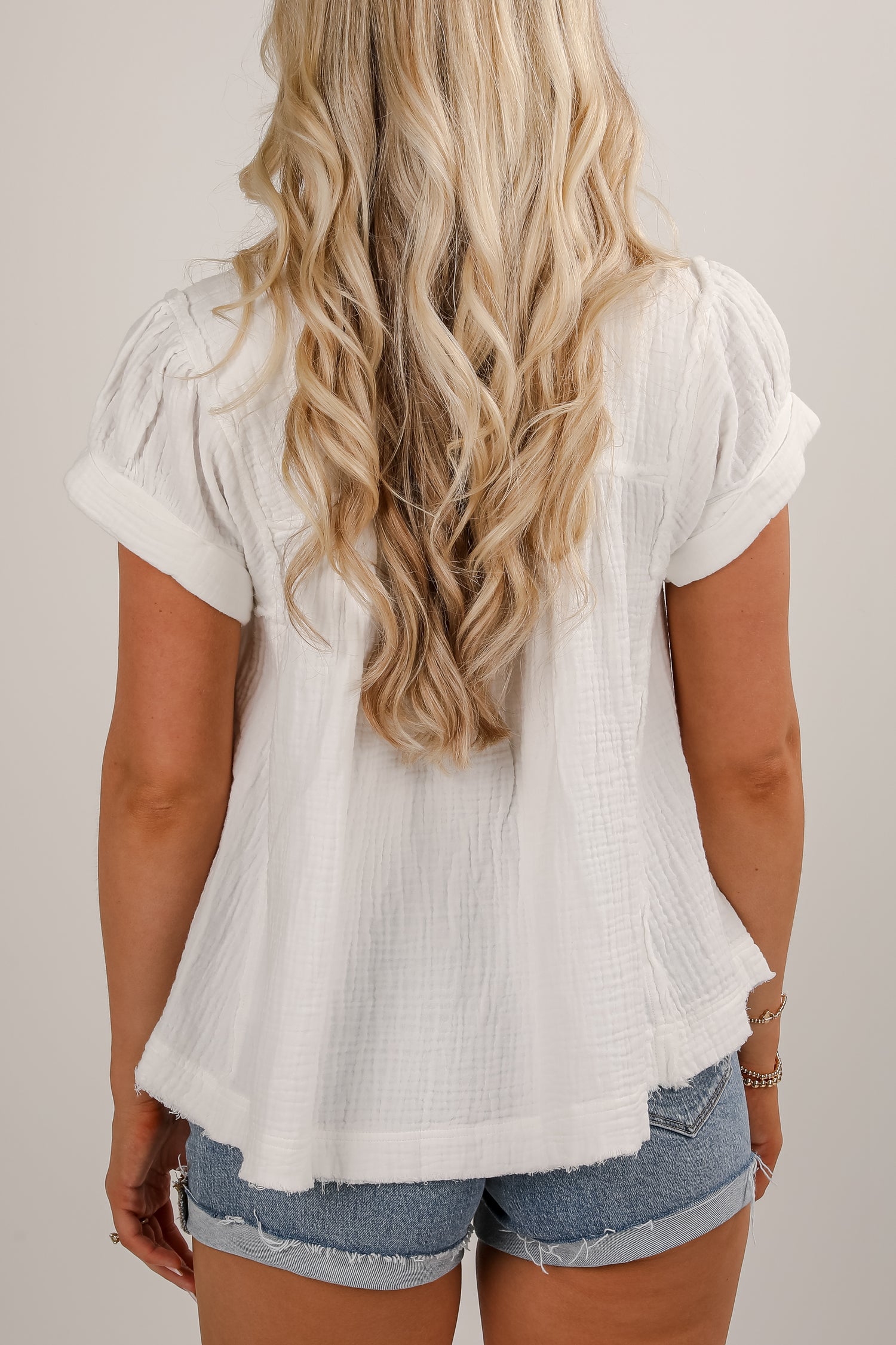 You'll never worry about having nothing to wear when the So Much In Common White Linen Blouse can be styled with anything and everything! Made from breathable linen fabric, this timeless top features a relaxed fit with short sleeves and a crisp button front for effortless style. The lightweight feel makes it perfect for warm days, while the clean white hue keeps it fresh and versatile. Dress it up with tailored pants or keep it casual with denim—either way, this blouse is a staple for easy, everyday chic!