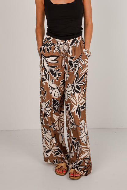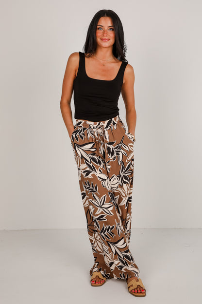 FINAL SALE - Spend Some Time Taupe Floral Wide Leg Pants