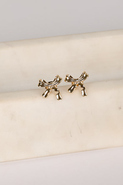 The Stephanie Gold Bow Earrings always call in compliments! These trendy earrings are designed with a bow shape + stud post back. Add these cute earrings to a black dress + heels to add a girly touch to your date night look!