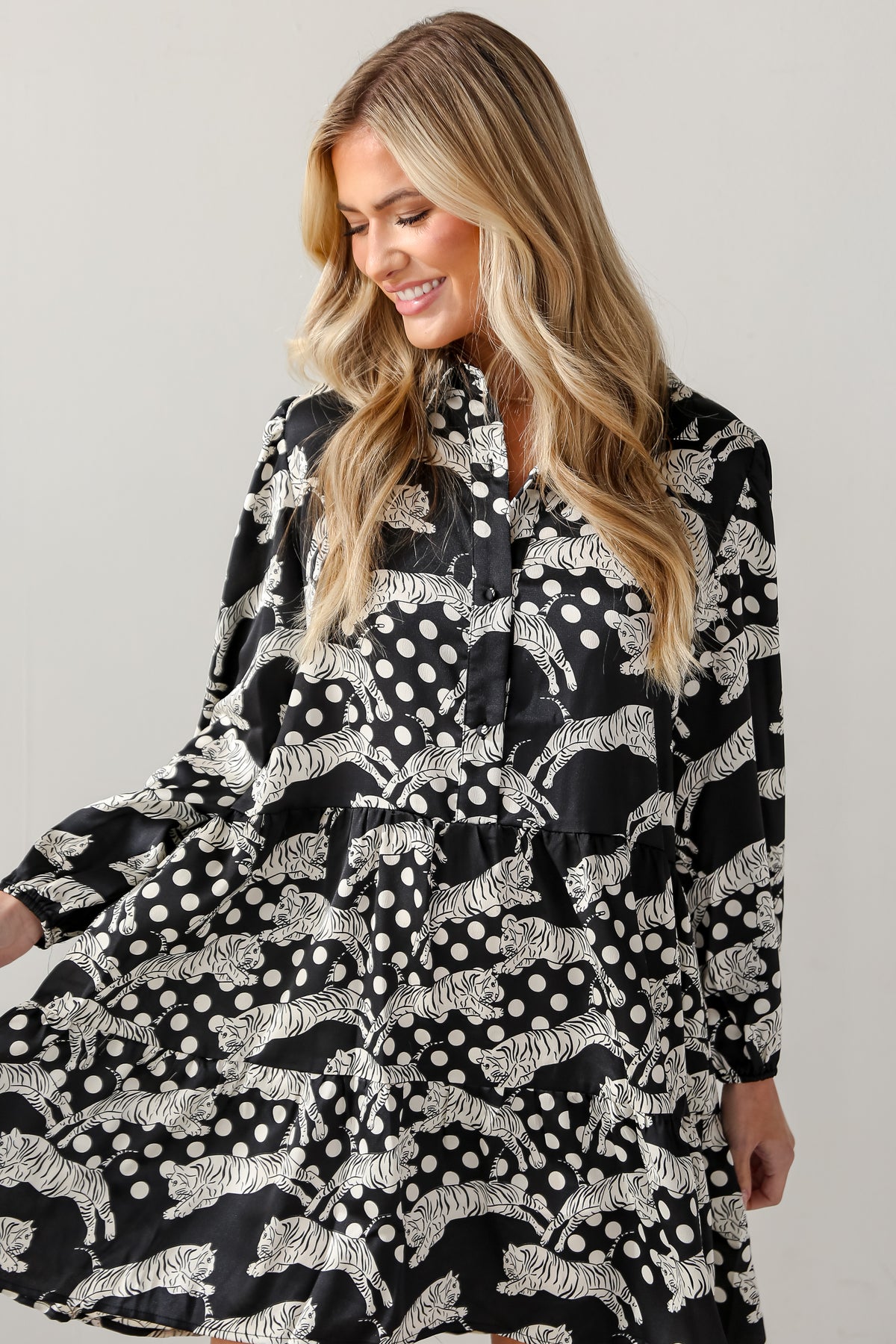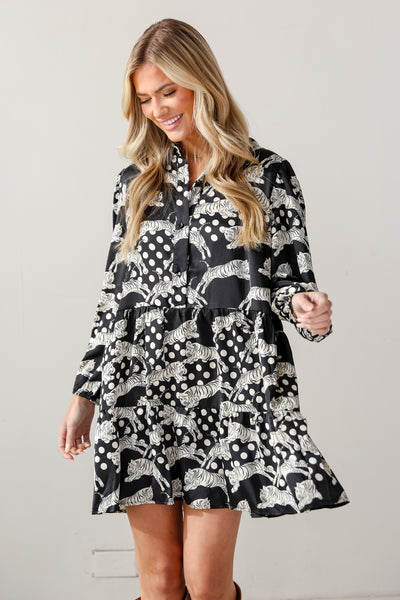 FINAL SALE - Style Spotting Black Tiger Mini Dress