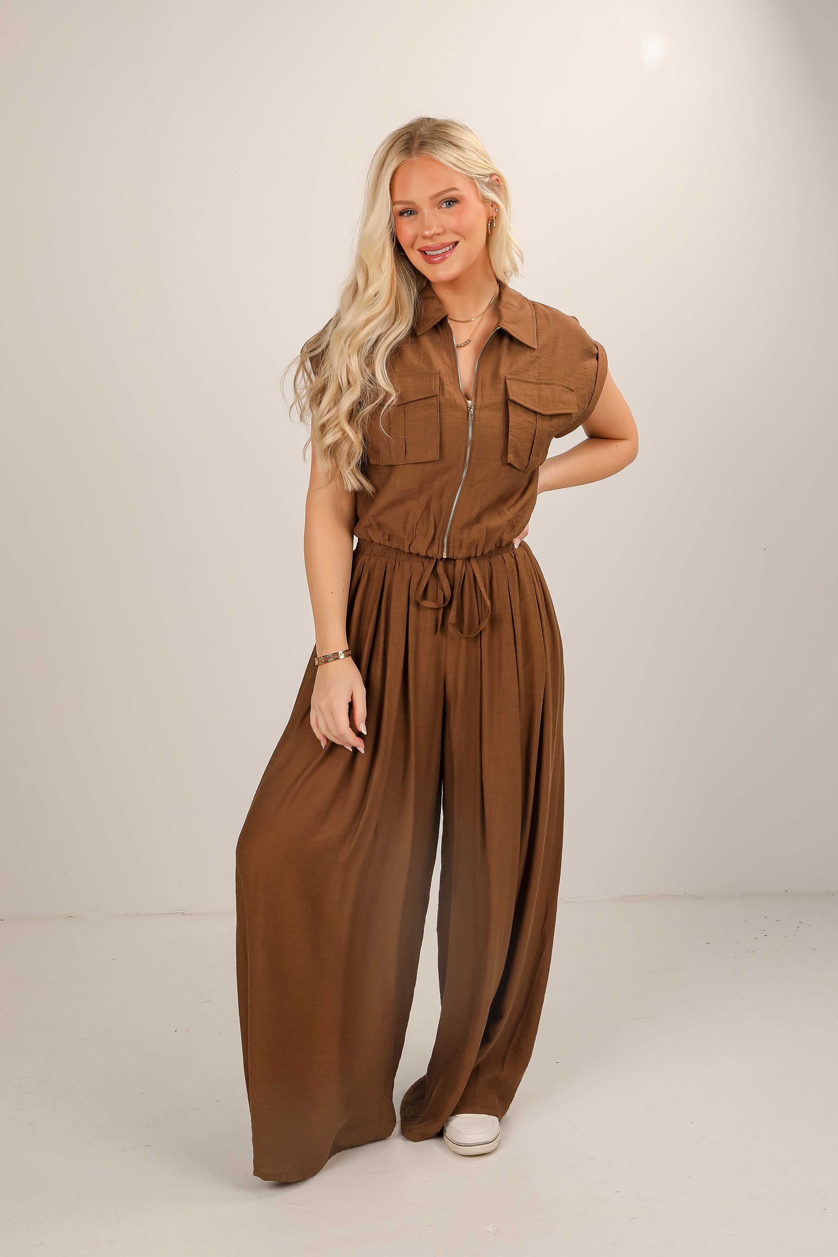 Nothing beats a summer spent in the Summer Rendezvous Blouse! Featuring a sleek collared neckline and a functional zip-front closure, this blouse adds a touch of edgy sophistication to your look. The short sleeves and lightweight fabric make it perfect for warm-weather styling, while the relaxed fit keeps it comfortable and versatile. Pair it with tailored trousers for a polished vibe or style it with denim for an effortlessly chic everyday outfit! Available in 2 colors.