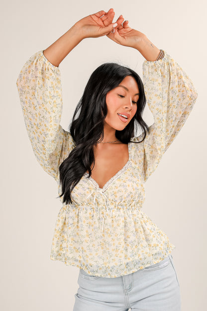 FINAL SALE - Sunlit Blossoms Yellow Floral Blouse