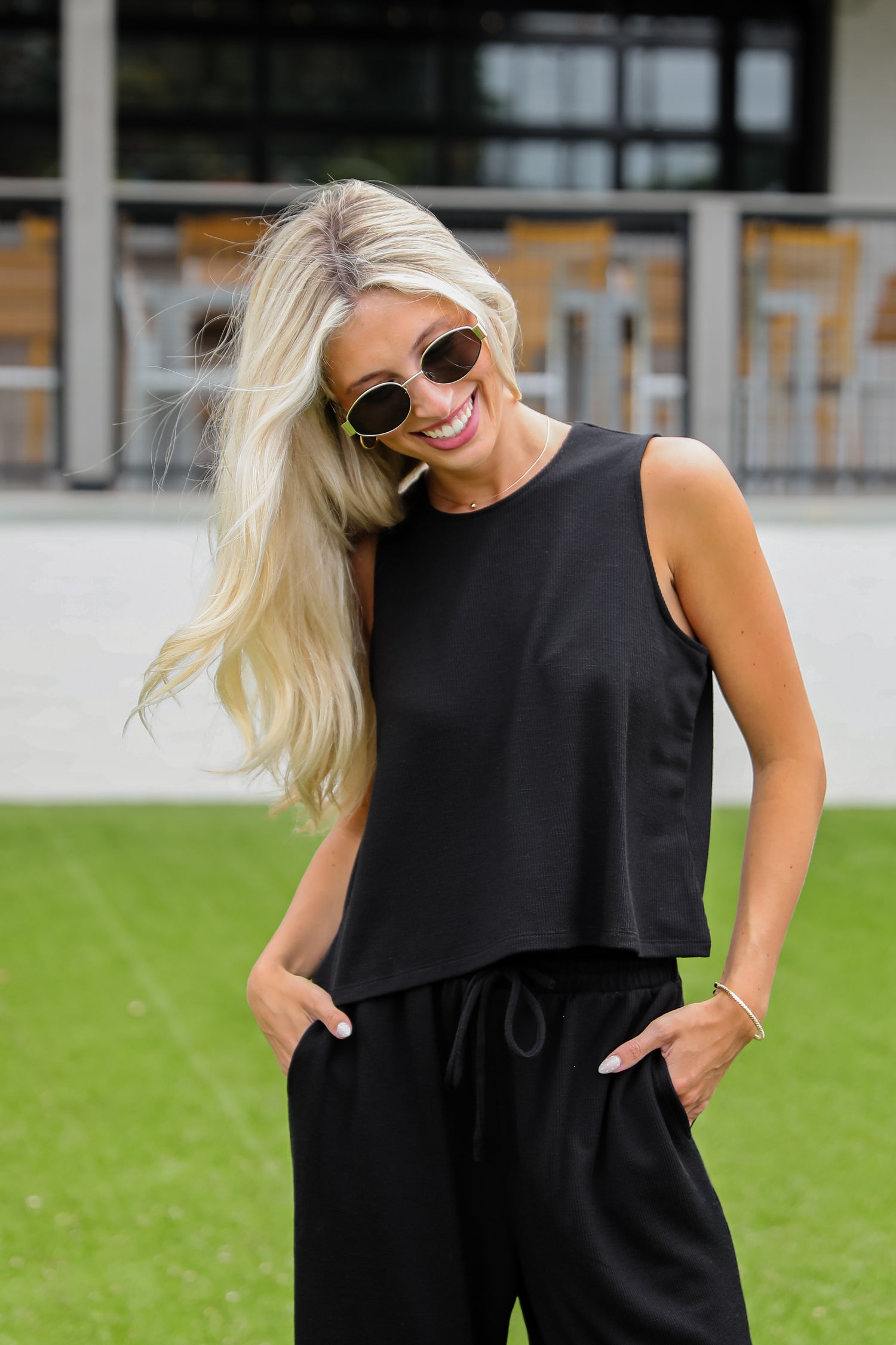 FINAL SALE - Take A Break Black Ribbed Tank - DU DEAL