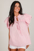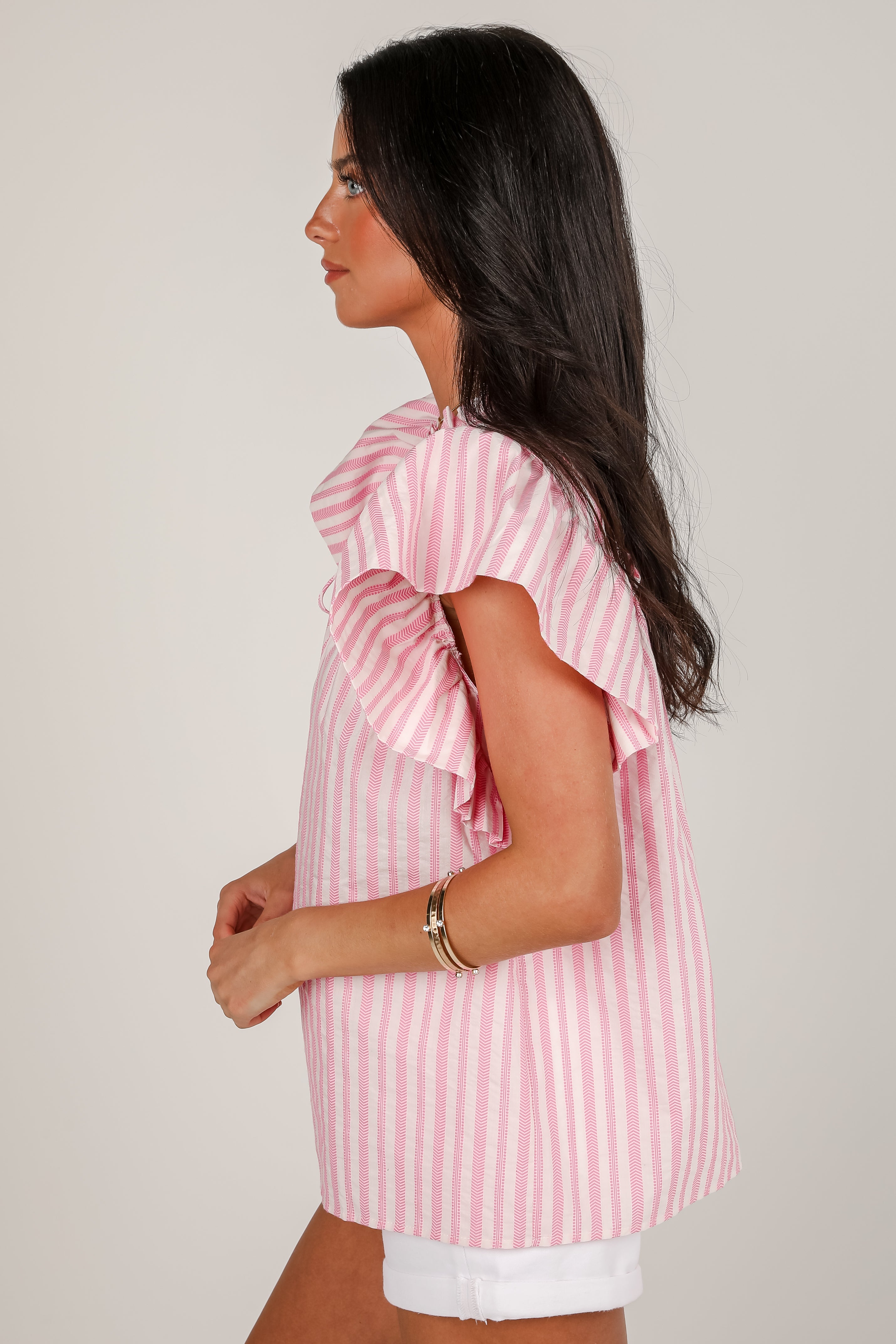 FINAL SALE - Tell It All Pink Striped Ruffle Blouse