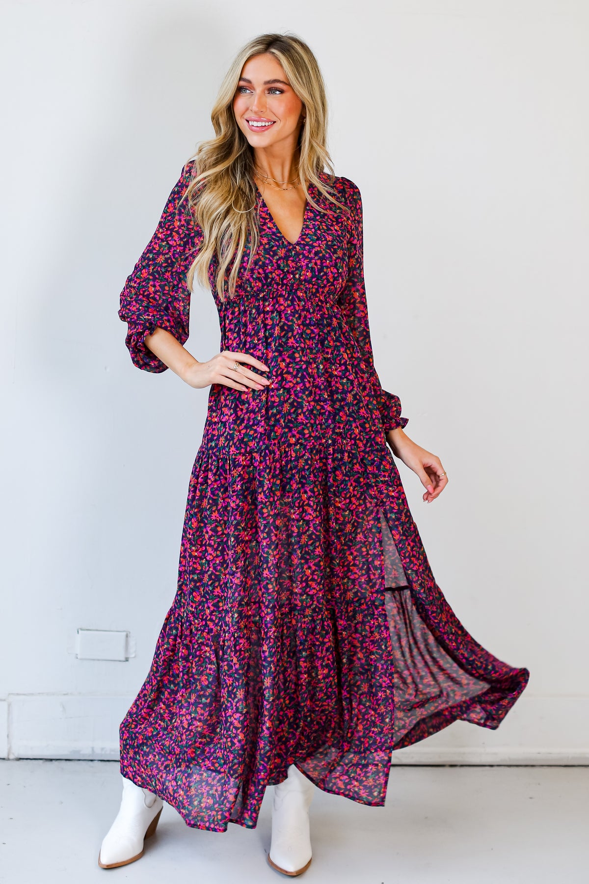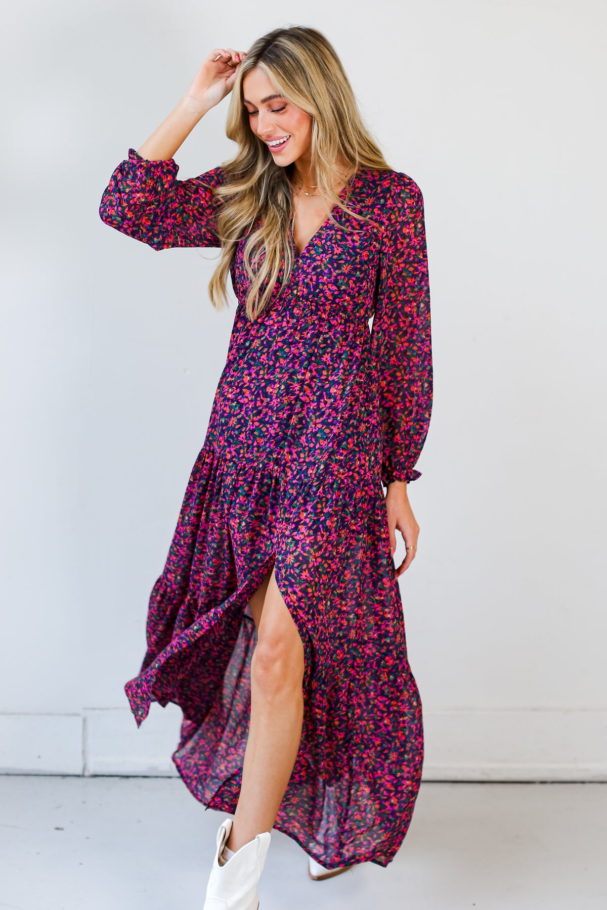 magenta Floral Maxi Dress side view Online Dress Boutiques