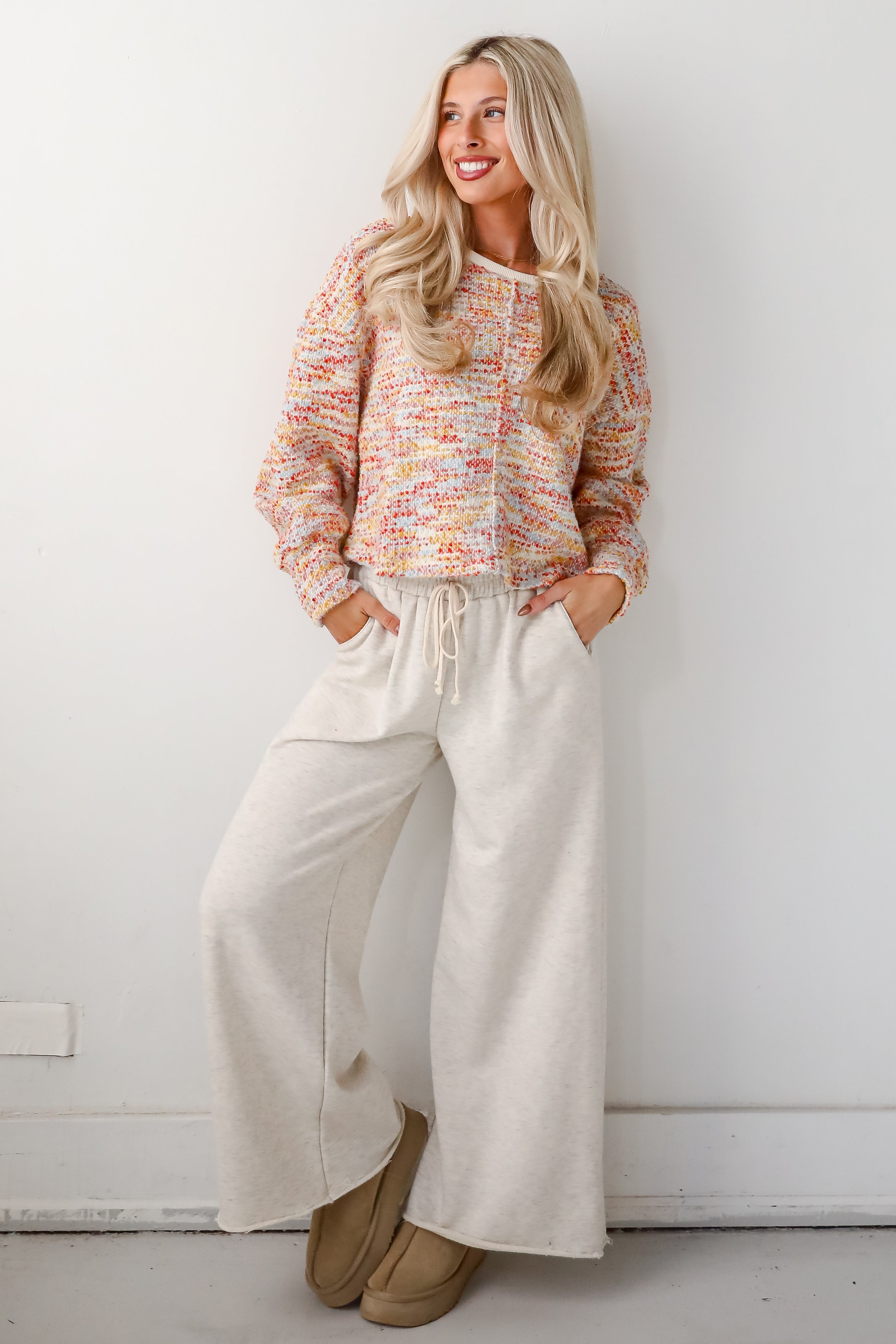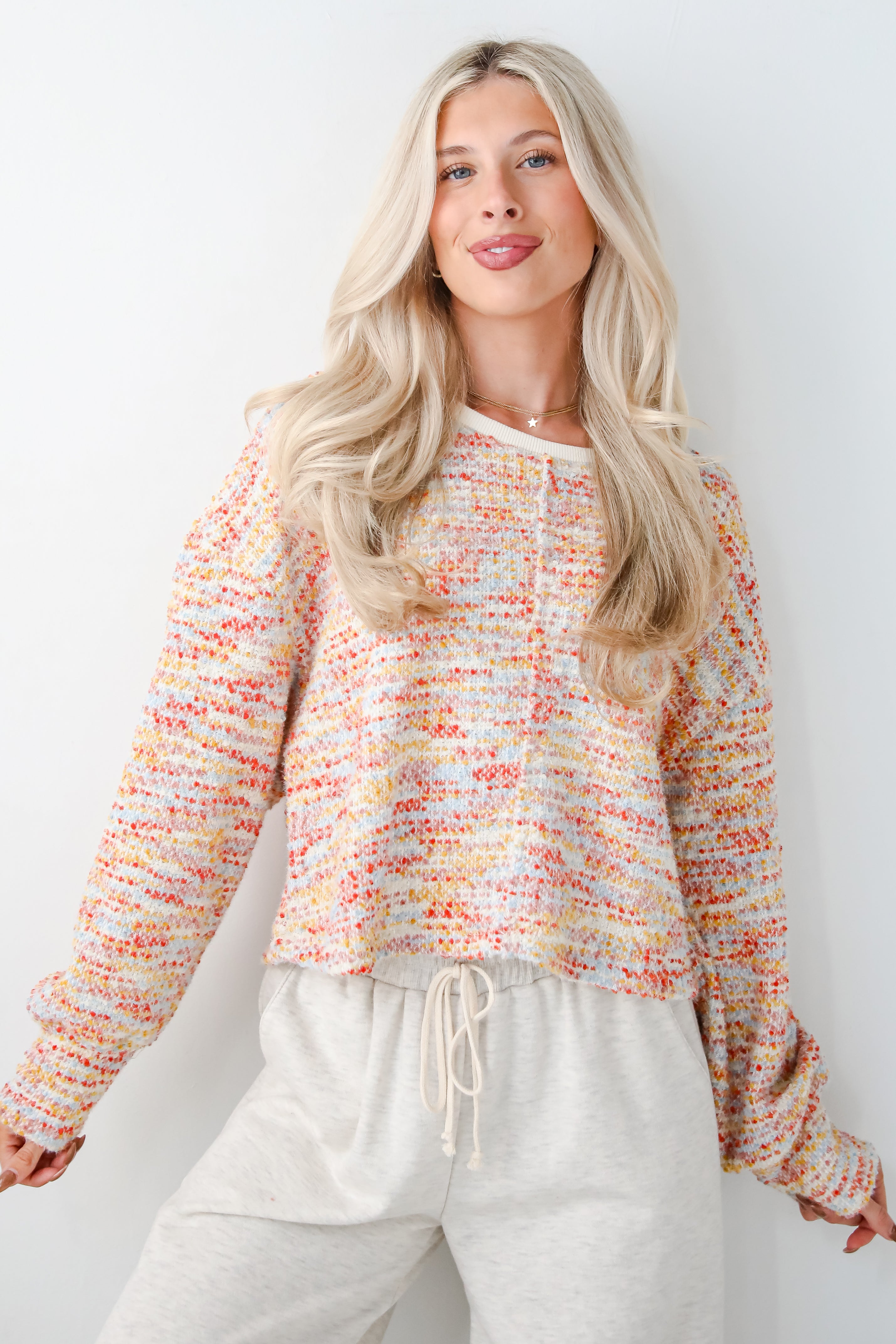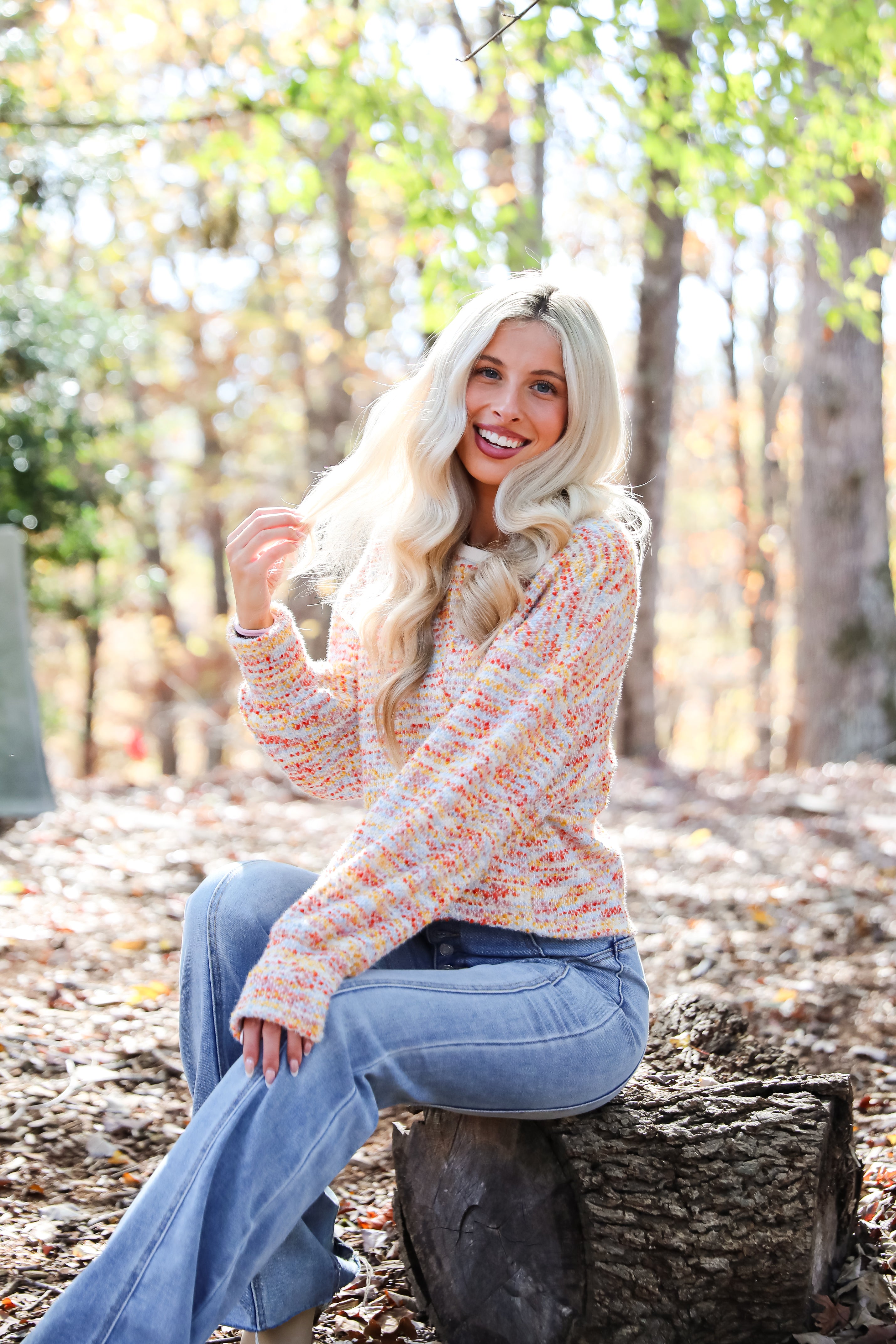 The Toasty Charm Multi Sweater will keep you looking cozy and cute all season long! Featuring a dynamic mix of colors, this sweater offers a playful, eye-catching design that’s perfect for adding a pop of personality to your look. Crafted from soft, cozy fabric, it provides both warmth and comfort, making it ideal for cooler days. The relaxed fit and classic details, like ribbed cuffs and hem, ensure a flattering and comfortable fit. Pair it with jeans, skirts, or leggings for an effortless yet bold style that transitions seamlessly from casual to chic!