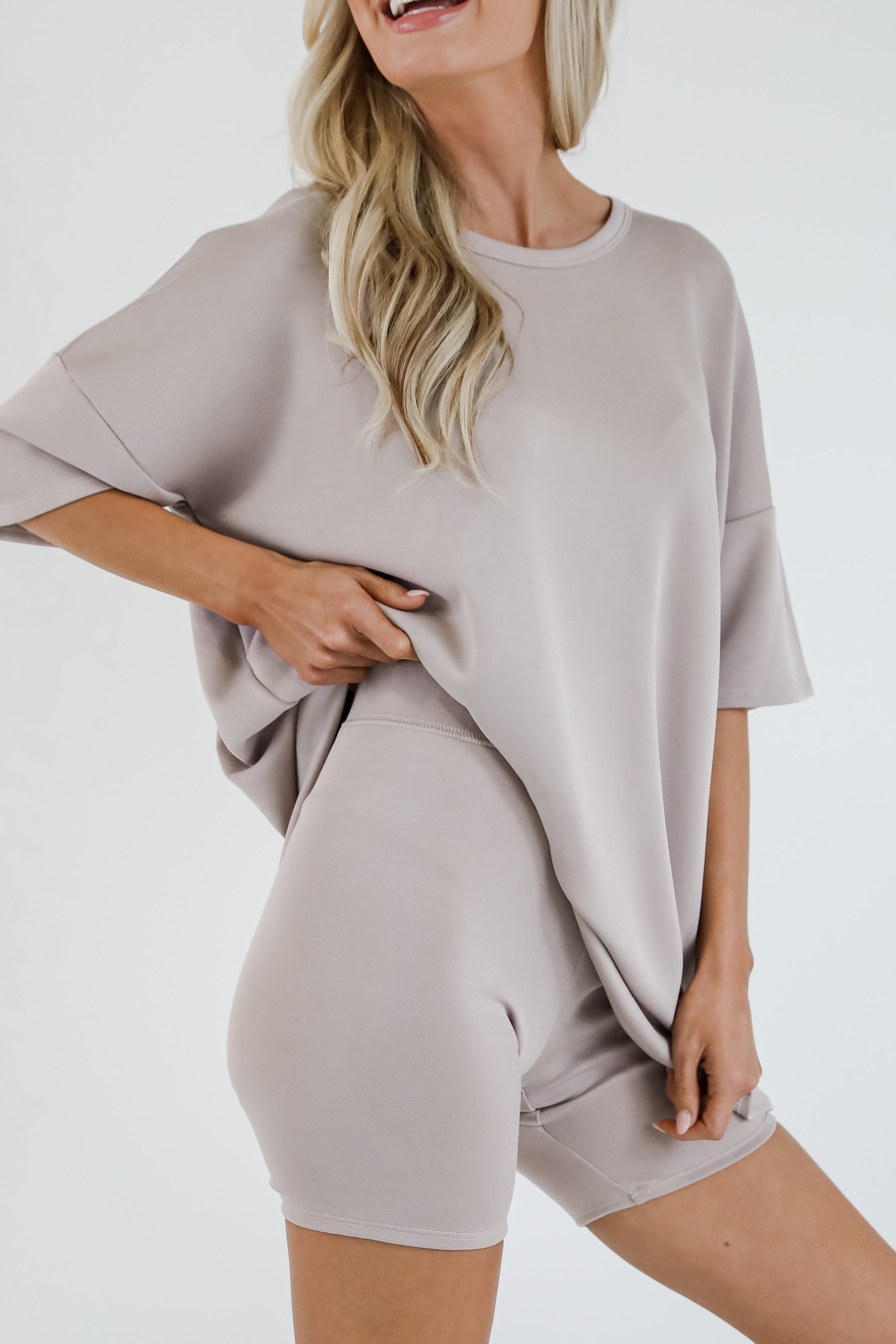 Something to think about when ordering this set, since the top is an oversized look you almost forget to check the shorts sizing. I typically wear an XL but oversized L fit and these shorts look like they could be a Size XS! No stretch whatsoever, I'd be lucky to fit one leg in them. Eek!!!!