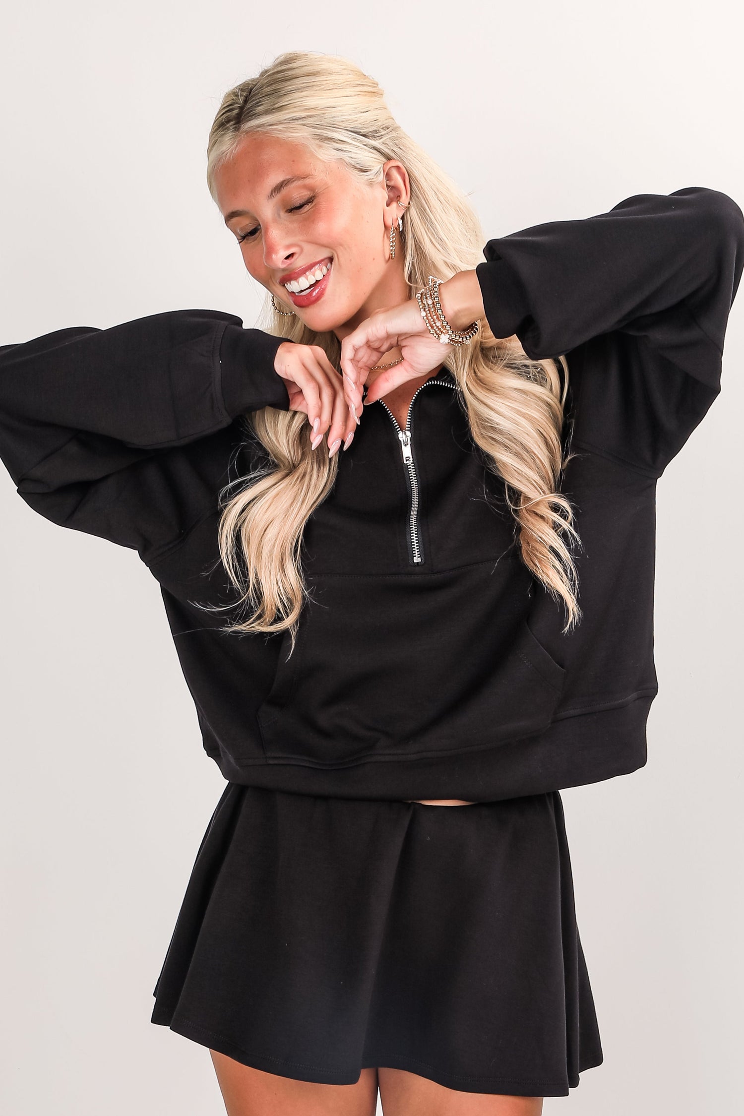 Embrace all-day comfort with the Ultra Air Soft Quarter Zip Pullover! Featuring a relaxed fit with a functional quarter zip and a roomy kangaroo pocket, this pullover is the perfect blend of laid-back style and everyday comfort. The lightweight, stretchy jersey knit makes it ideal for layering, whether you’re lounging at home, running errands, or heading out for a casual day. Pair it with leggings, joggers, or denim for an effortlessly cool look! Available in 2 colors.