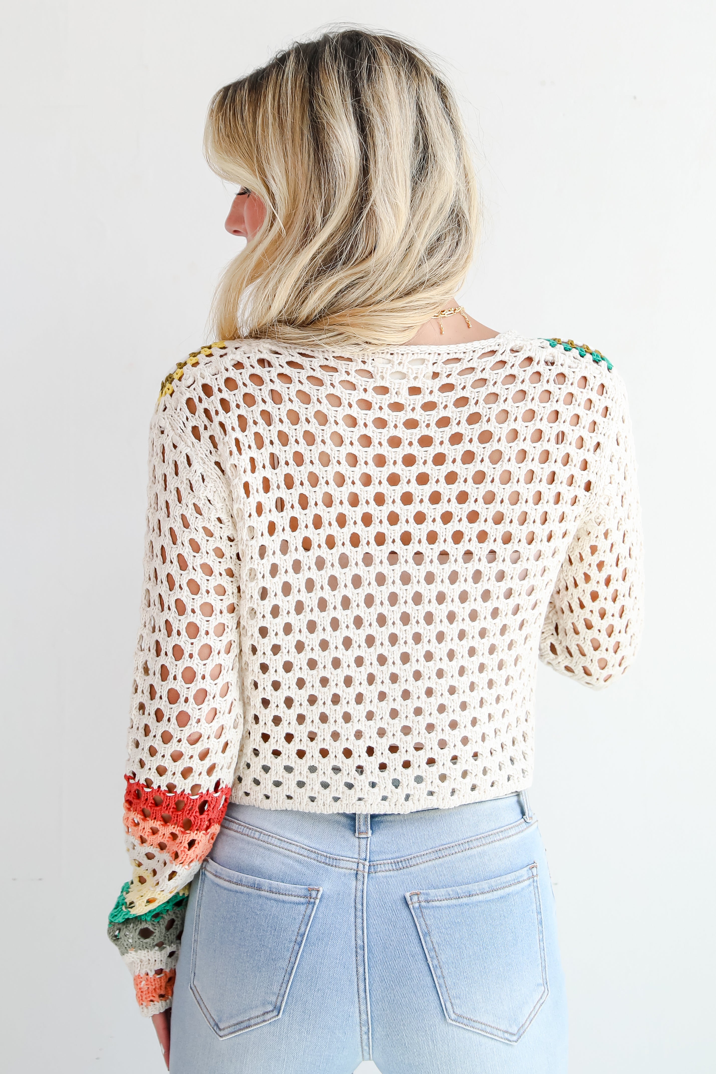 FINAL SALE - Vibrant Crush Ivory Crochet Knit Top