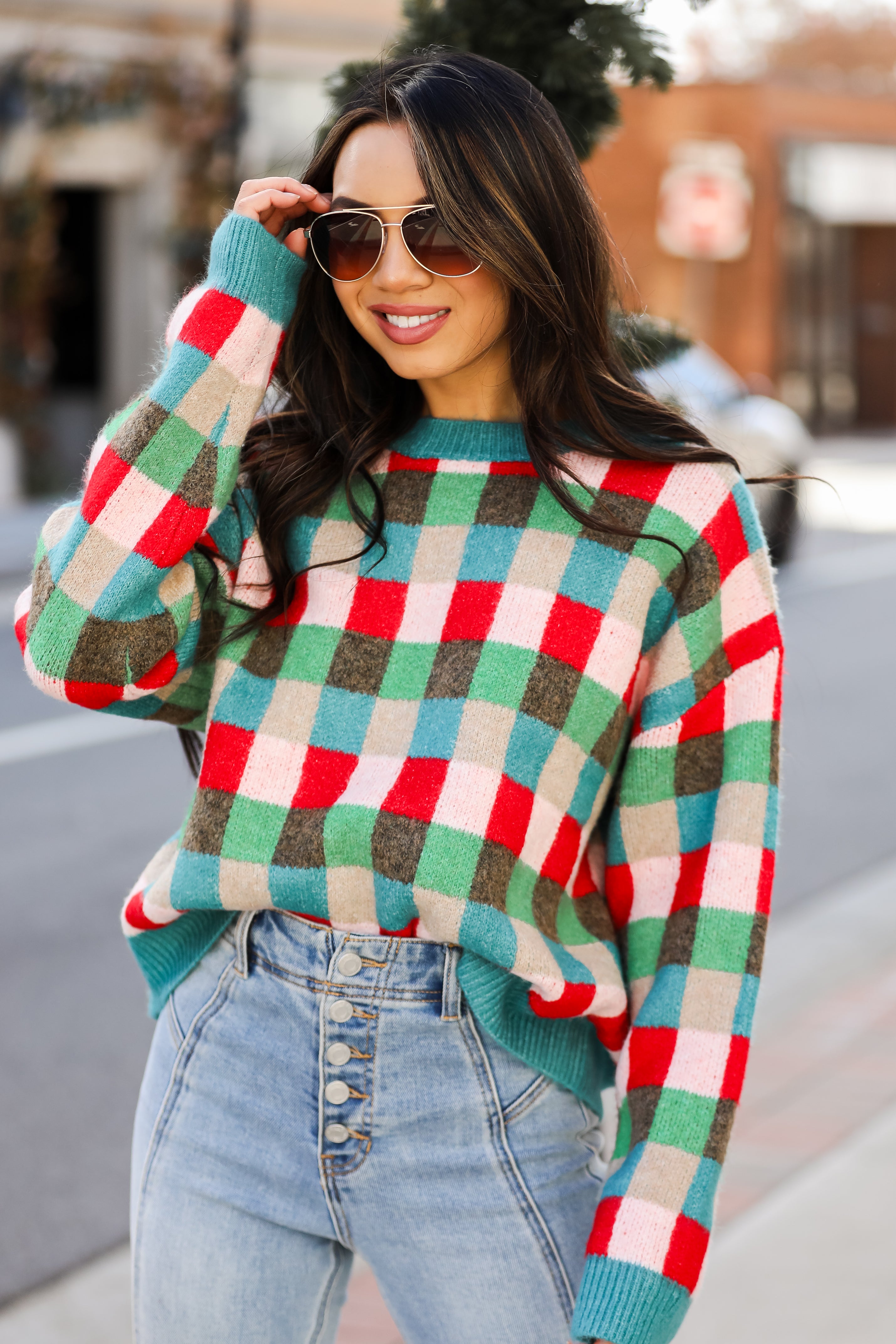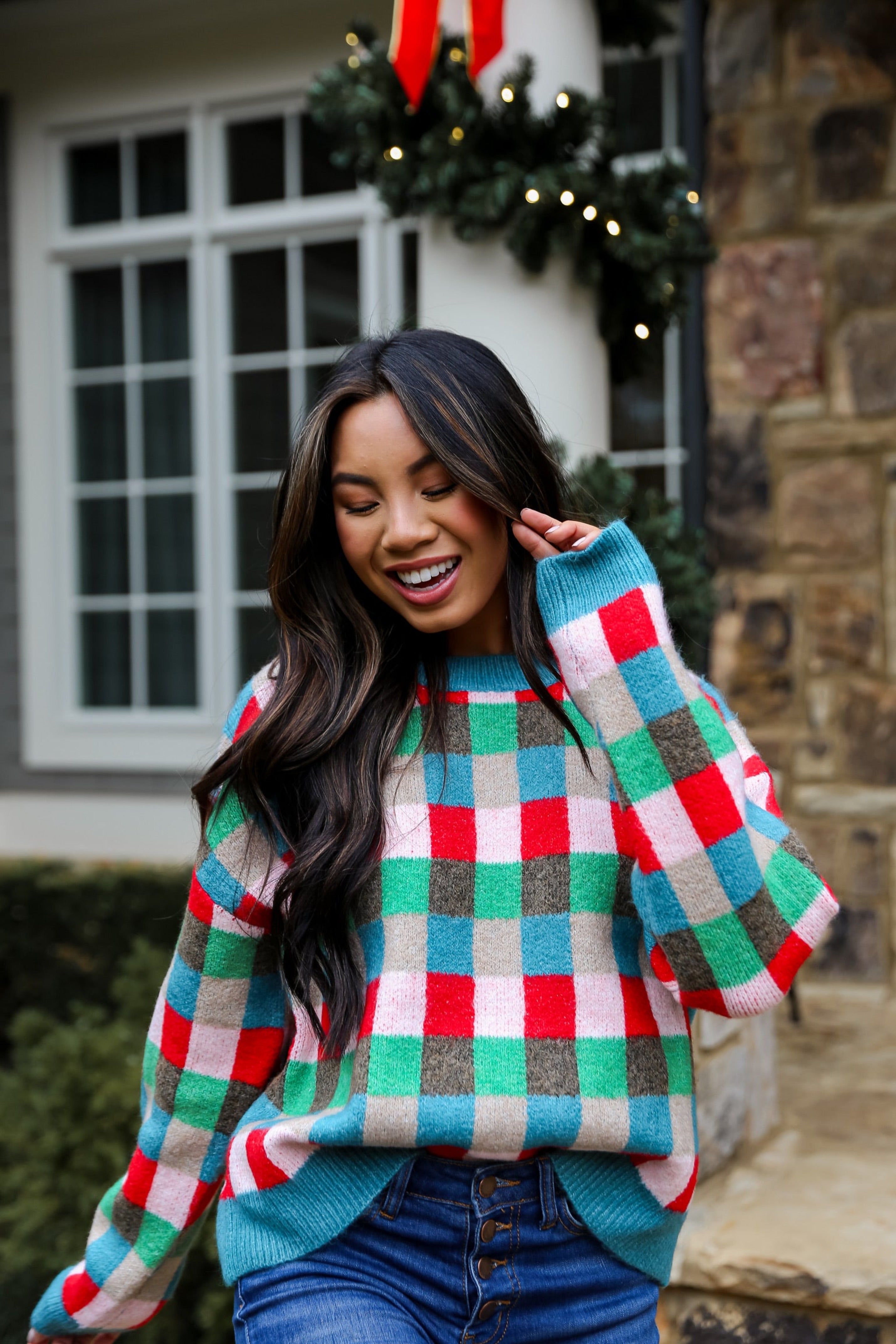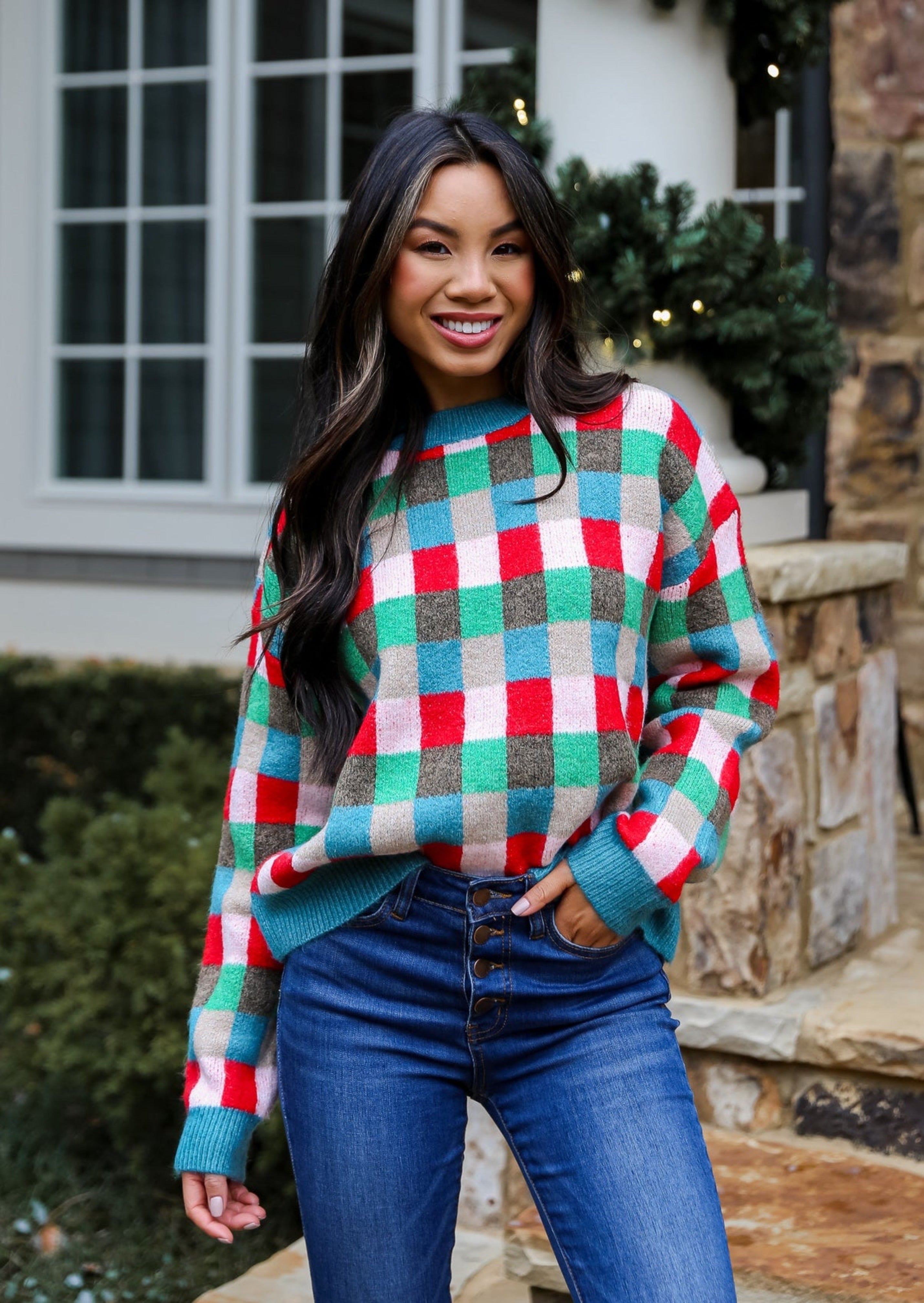 Brighten up the dark winter days with an adorable (and essential) accessory like the Warm Expression Checkered Sweater! This sweater is a celebration of playful patterns and a kaleidoscope of hues, making it a must-have for those who dare to stand out and embrace their unique sense of fashion. The dynamic checkered pattern features a captivating array of colors, creating a visual symphony that instantly elevates your look. Crafted with meticulous attention to both comfort and design, the soft knit of this sweater provides a cozy and warm embrace against your skin. The relaxed fit allows for ease of movement, making it a versatile choice for casual outings, creative workplaces, or cozy evenings at home. Pair this colorful checkered sweater with your favorite jeans for an effortlessly chic daytime look, or layer it over a skirt for a bold and eclectic statement. The versatility of this piece invites you to explore various styling options, letting your personality shine through your fashion choices!