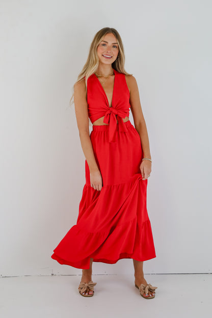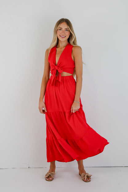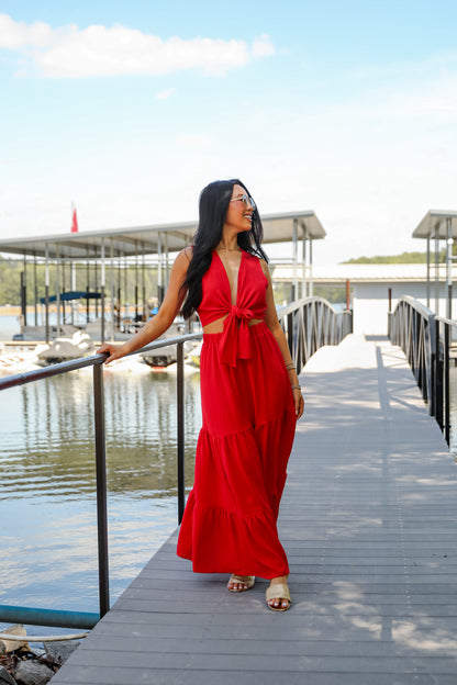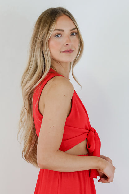 The Wave Of Liberty Red Tie-Front Tank will have all your admirers obsessed with you! This vibrant tank features a flattering v-neckline and a playful front tie detail that adds just the right touch of flirty flair. The lightweight, breathable fabric keeps you cool and comfortable, while the relaxed fit makes it easy to pair with anything from denim shorts to flowy skirts. Whether you're heading out for brunch or catching sunset views, this tank is your go-to for effortless style!