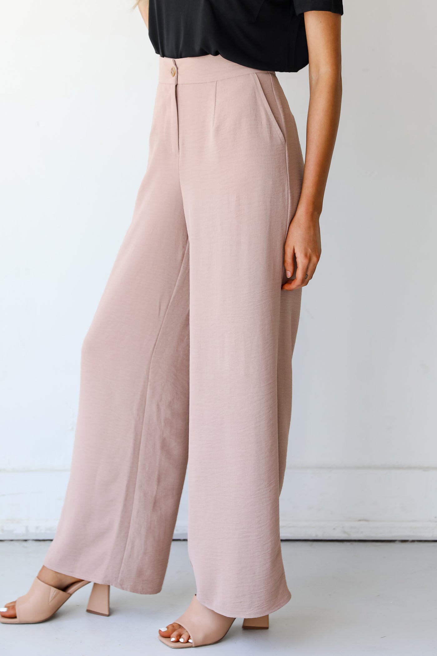 From the desk to after-hours fun, the We Mean Business Trouser Pants will have you looking fab! These trendy pants are designed with a lightweight woven knit. They feature a high-waisted fit, an elastic waistband in the back, a button + hidden zipper fly, and side pockets. They also have a wide leg fit! Style the We Mean Business Trouser Pants with any top from bodysuits to blouses for a chic look! Available in 2 colors.
