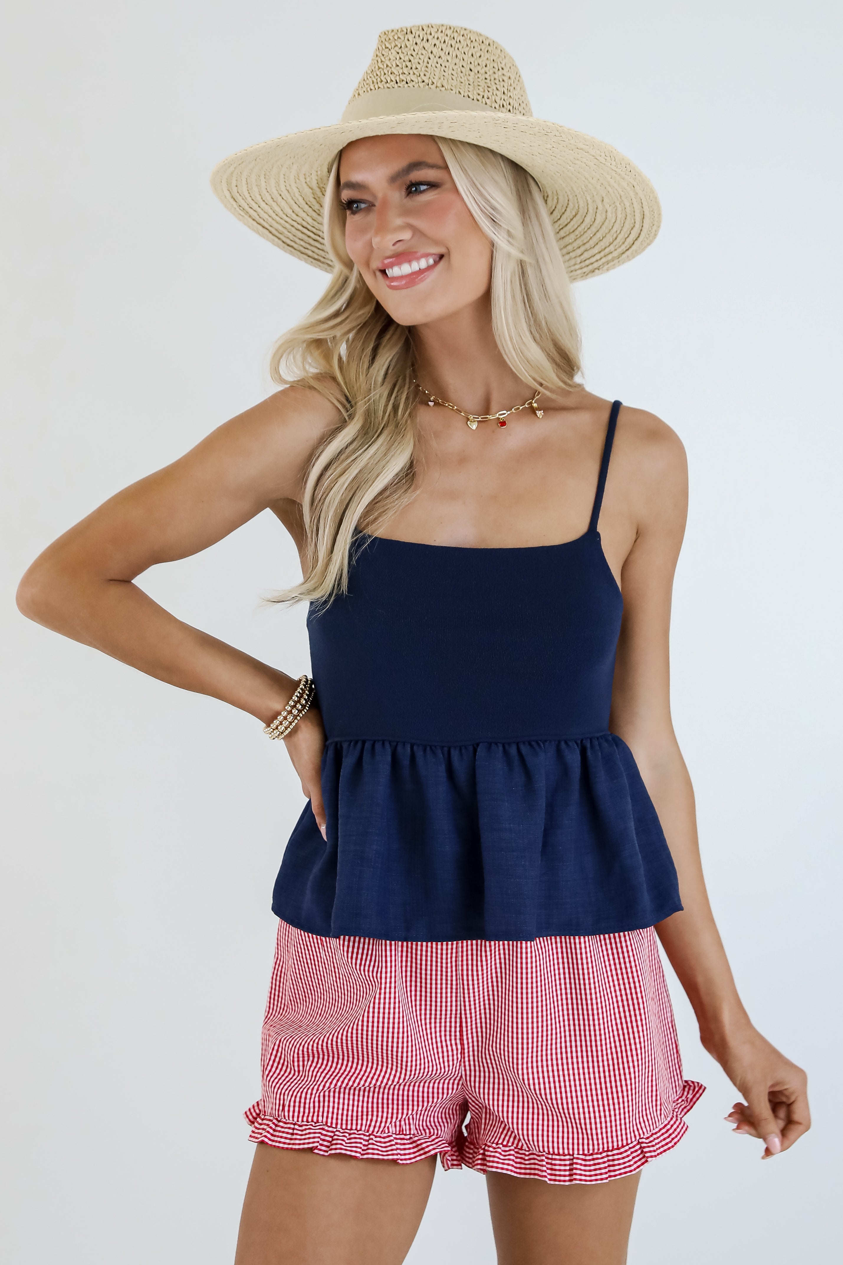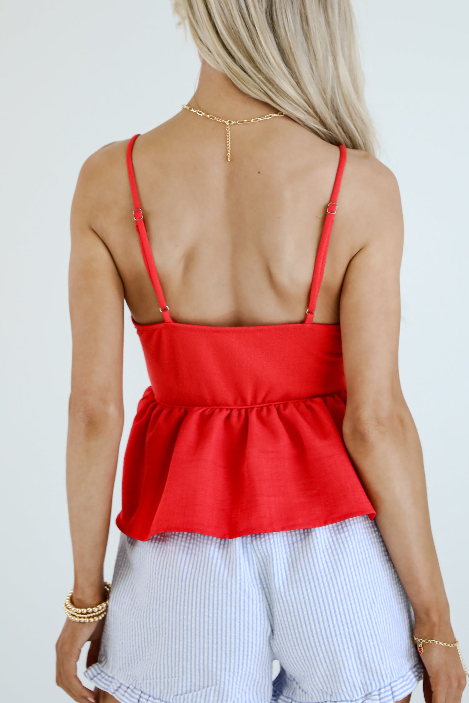 Get ready to have everyone's attention on you in the We The People Peplum Tank! Featuring a fitted bodice that flares into a flowy peplum hem, this tank creates a flattering silhouette that highlights your waist while keeping things light and breezy. The sleeveless design and soft, breathable fabric make it perfect for sunny days, while the classic cut makes it easy to dress up or down. Pair it with jeans, skirts, or shorts for an instantly put-together look! Available in 2 colors.