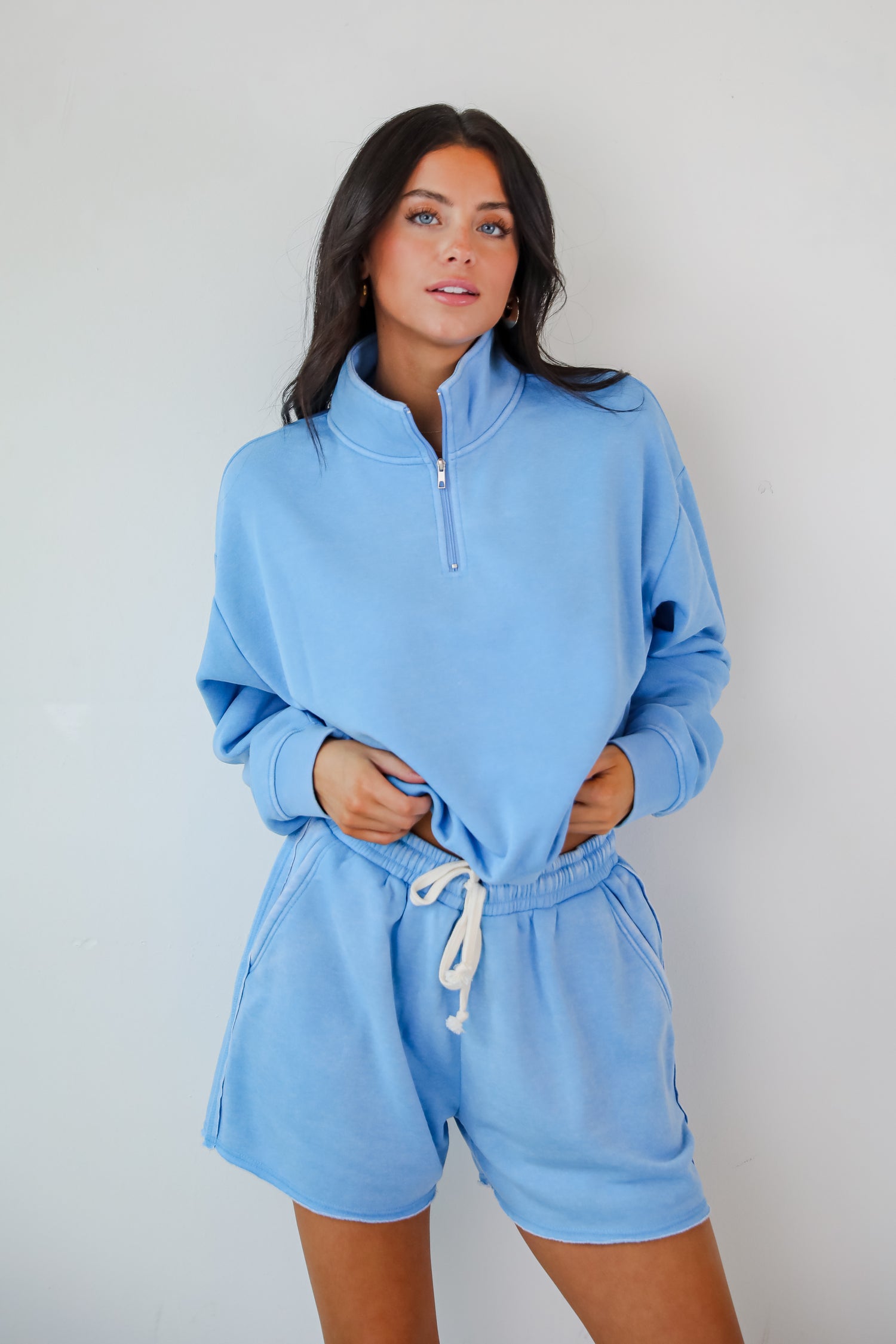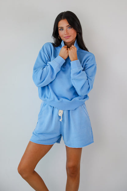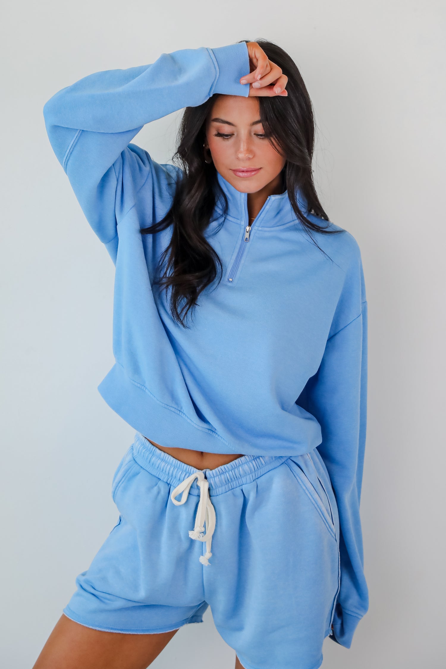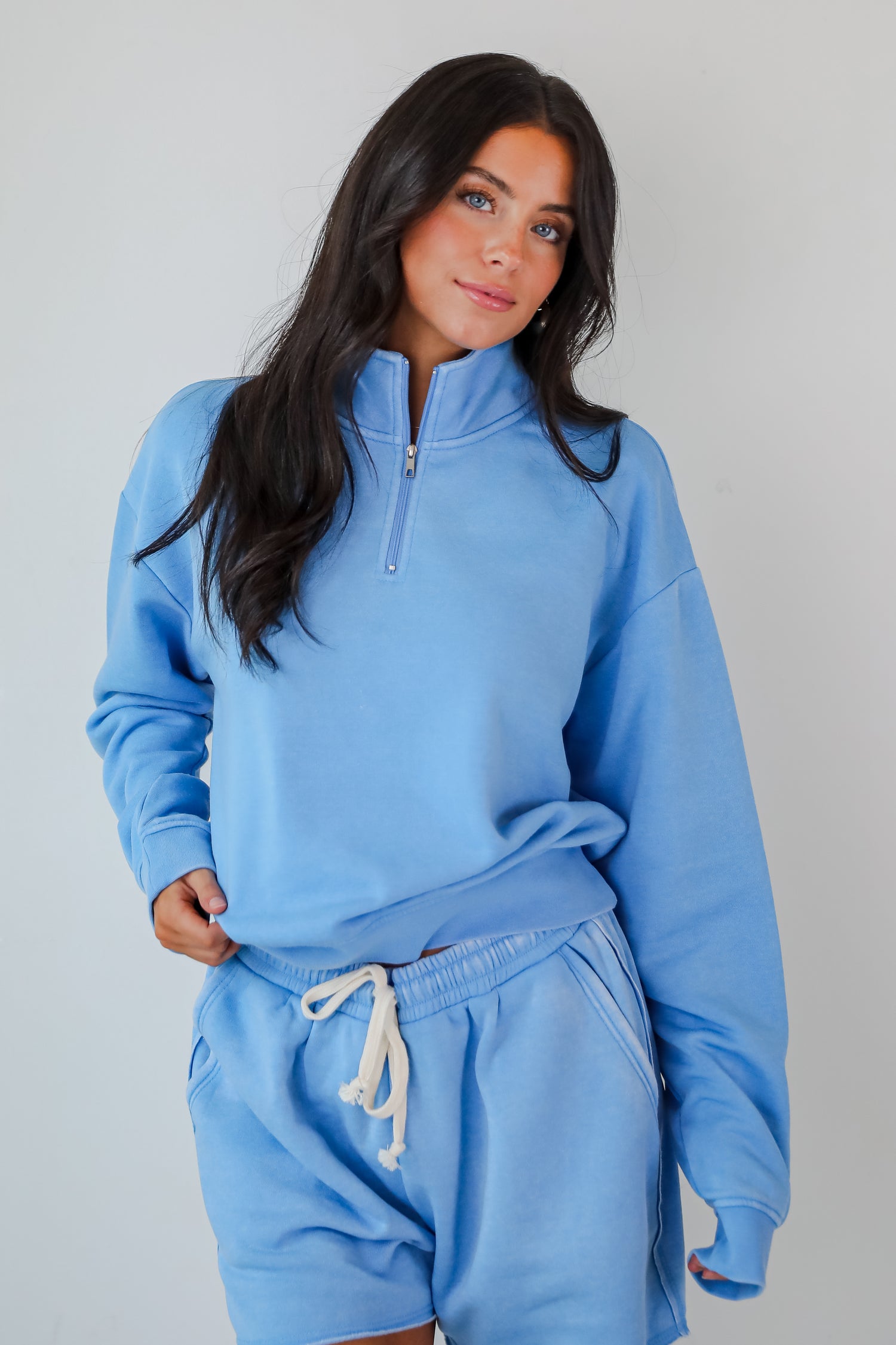 FINAL SALE - Weekend Adoration Blue Quarter Zip Pullover