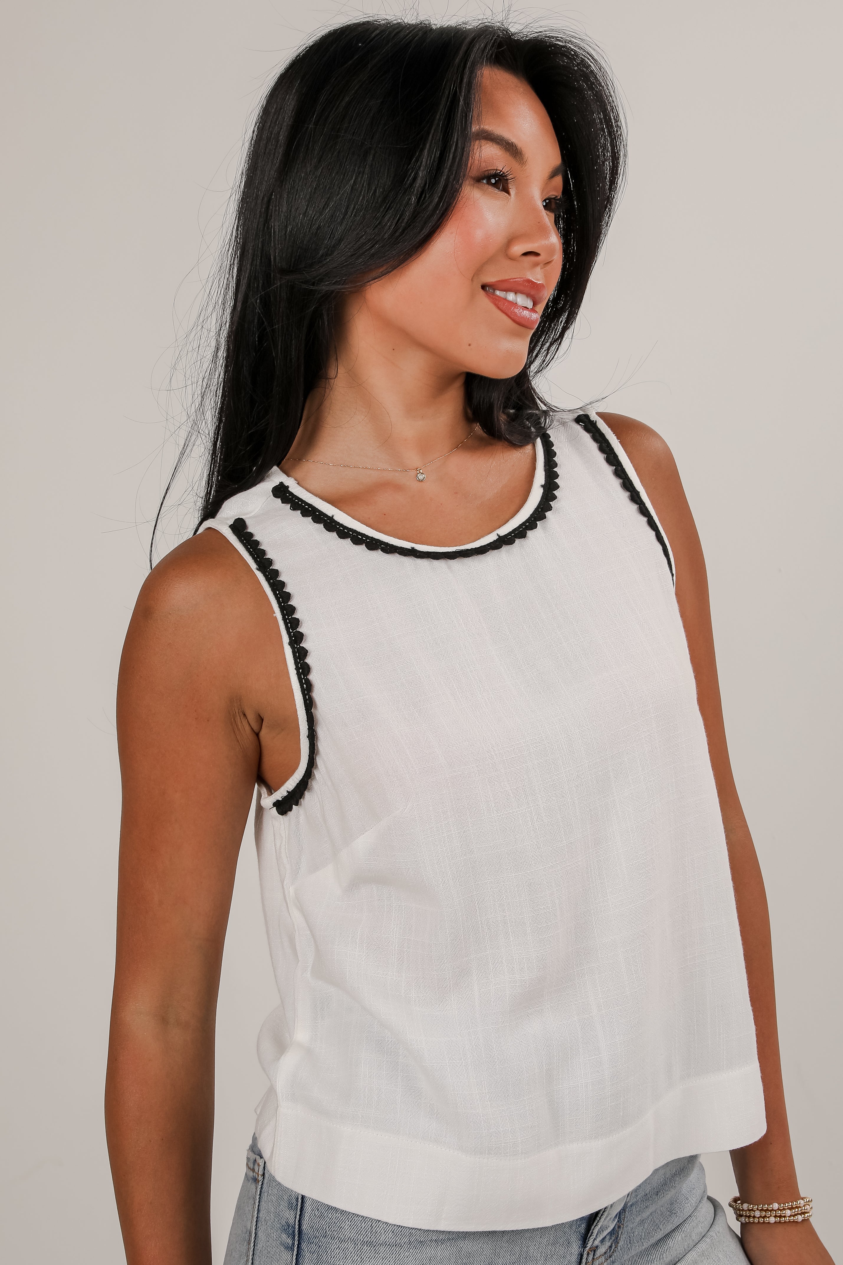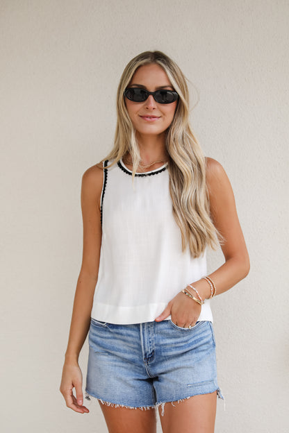 A summer of whimsy comes easily when you have the What You Want Tank! This easygoing tank features a relaxed fit and soft, breathable fabric, perfect for warm-weather wear. Delicate embroidered trim along the neckline and straps adds a feminine, artisanal touch that elevates the simple silhouette. Pair it with denim shorts, skirts, or layered under a light jacket for a pretty and effortless outfit all season long! Available in 2 colors.