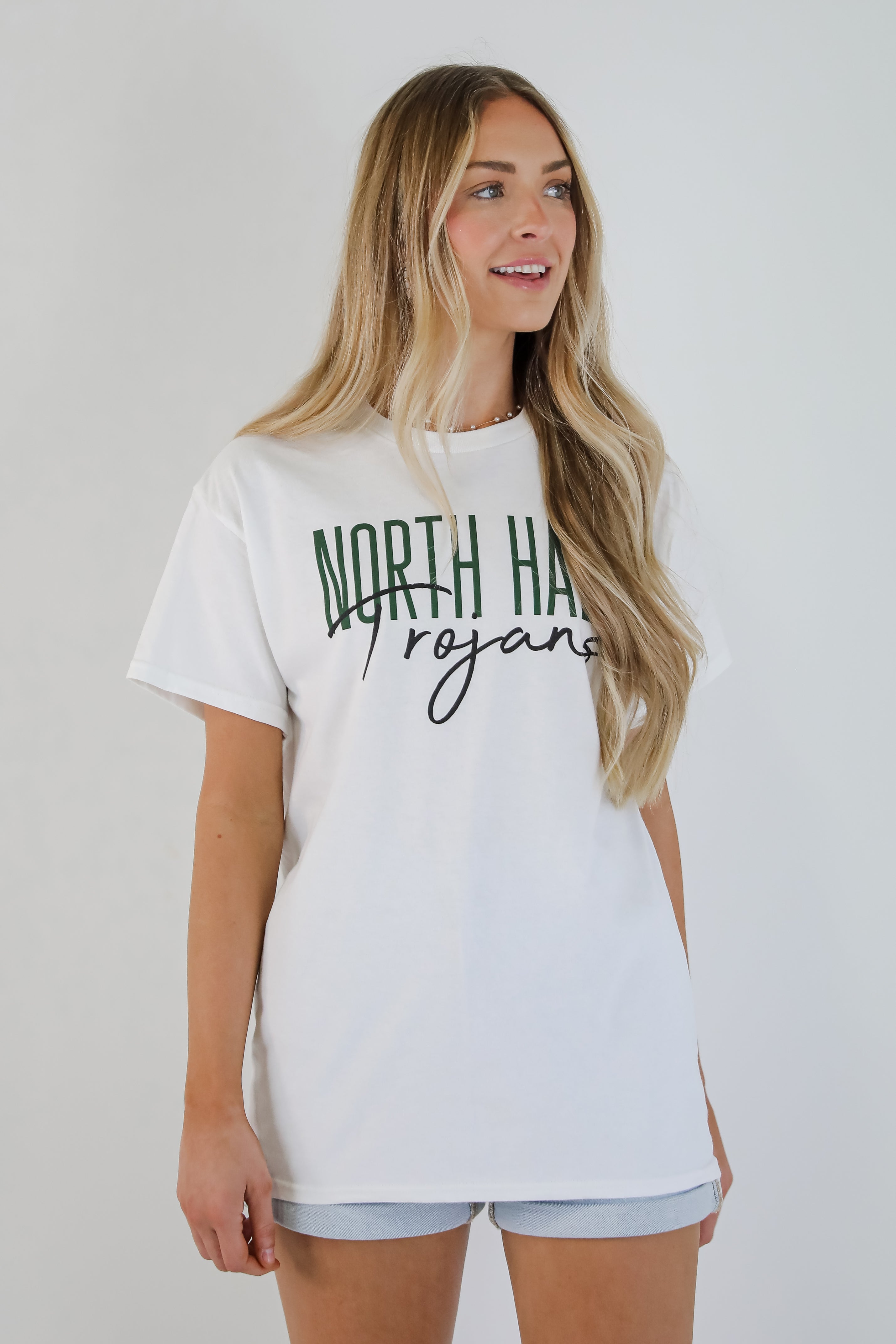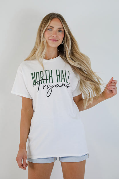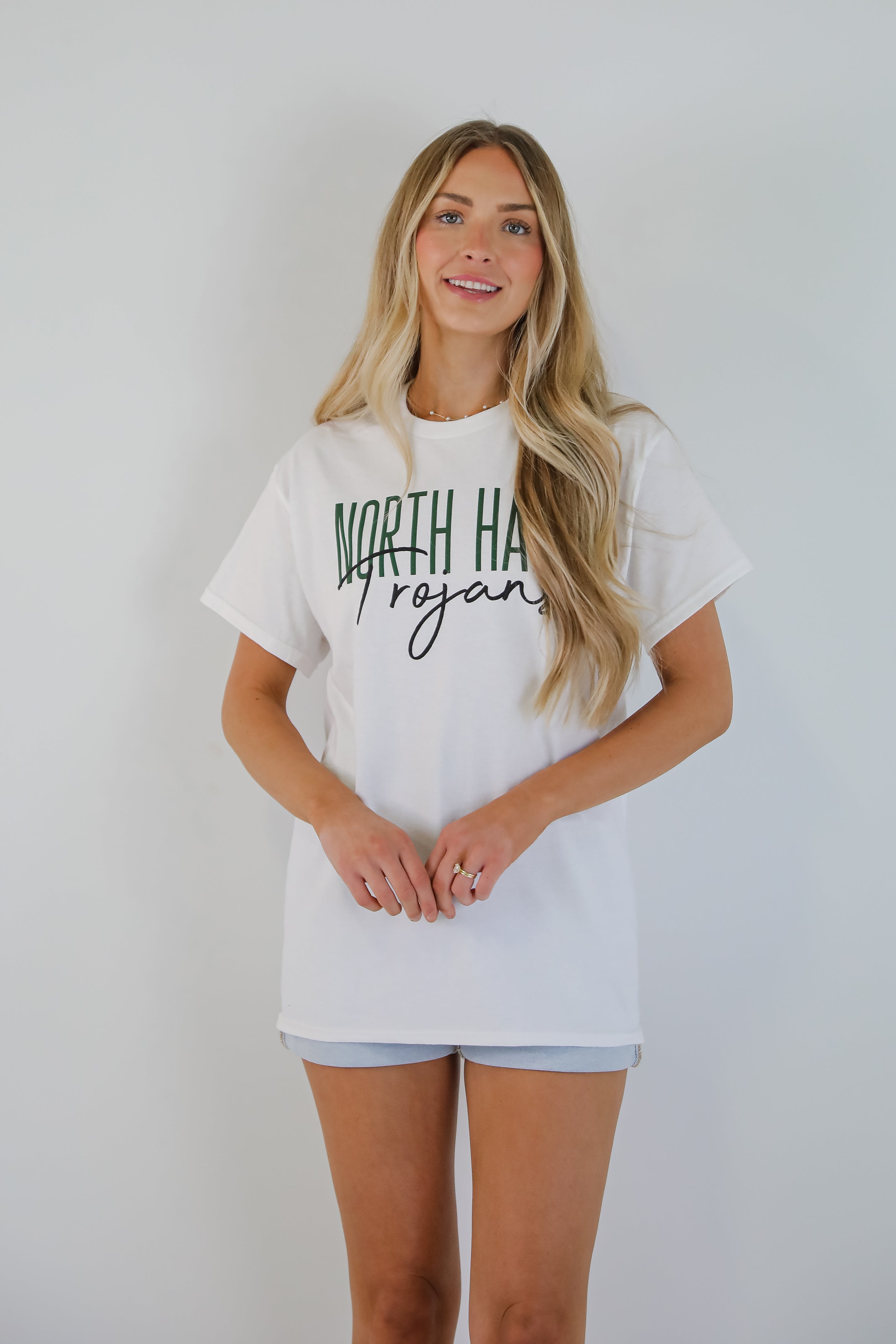 Calling all Gainesville residents, the White North Hall Trojans Tee was made just for you! This comfy tee is designed with a soft and stretchy knit. It features a crew neckline, short sleeves, a relaxed fit, and the words "North Hall Trojans" on the front. Style the White North Hall Trojans Tee with your favorite denim shorts and sneakers for a casual look!