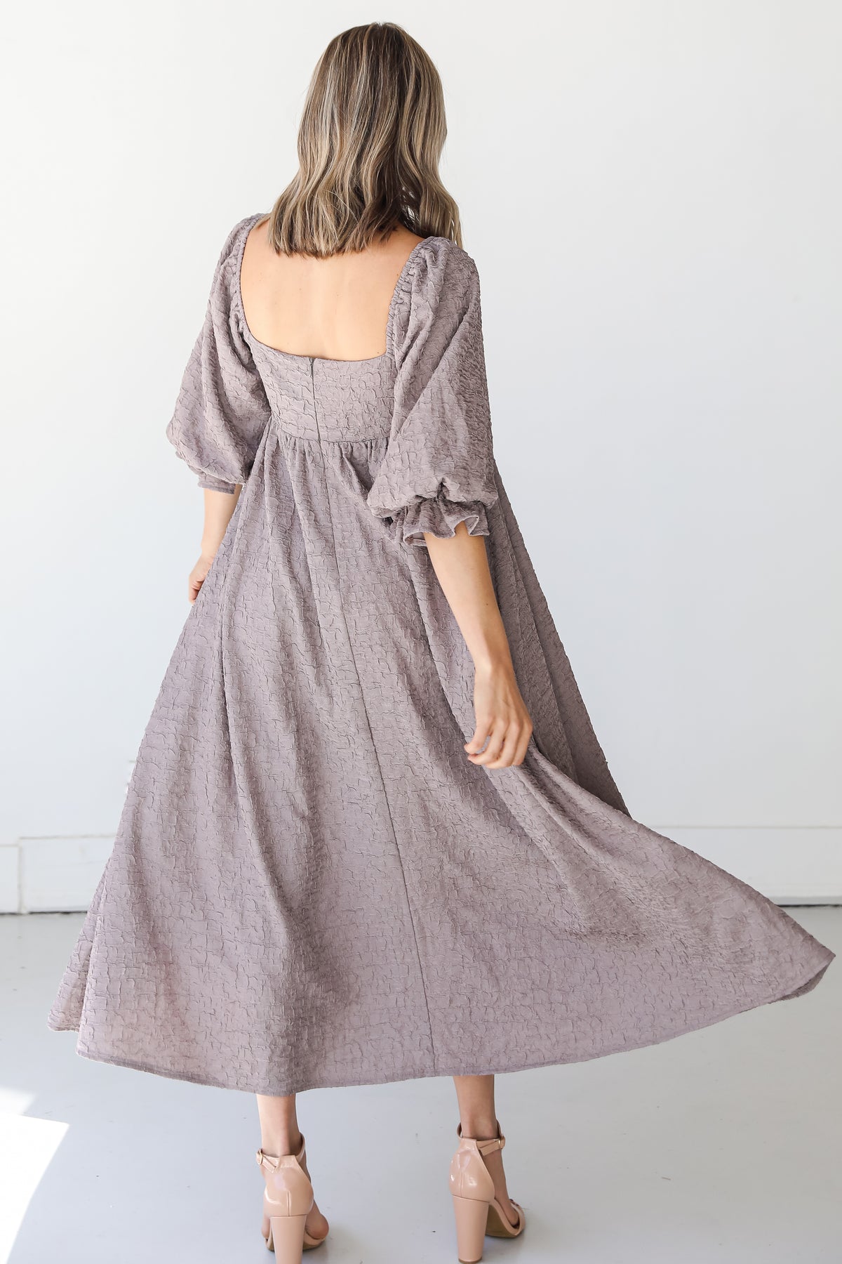 Dance your heart out under the stars in the Wishing On You Maxi Dress! This cute dress is made of a textured lightweight woven knit. It features a square neckline, elastic shoulders, half puff sleeves with elastic cuffs, and a flowy fit that ends at a maxi length. It also has a back zipper and side pockets! Style the Wishing On You Maxi Dress with booties + a wide brim hat for a breezy fall look!