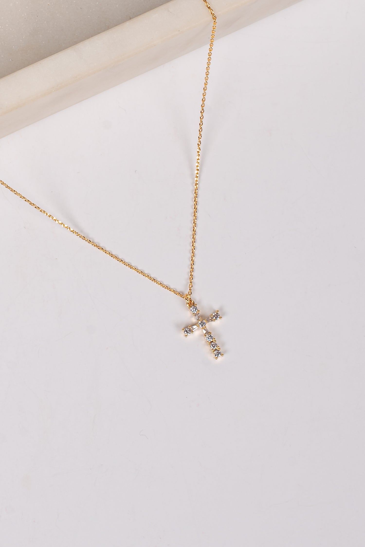 The Wren Gold Rhinestone Cross Charm Necklace can't help but make the most fabulous statement every time you style it! This dainty necklace features a gold chain with a rhinestone cross charm. Style the Wren Necklace with any outfit to instantly upgrade your look!