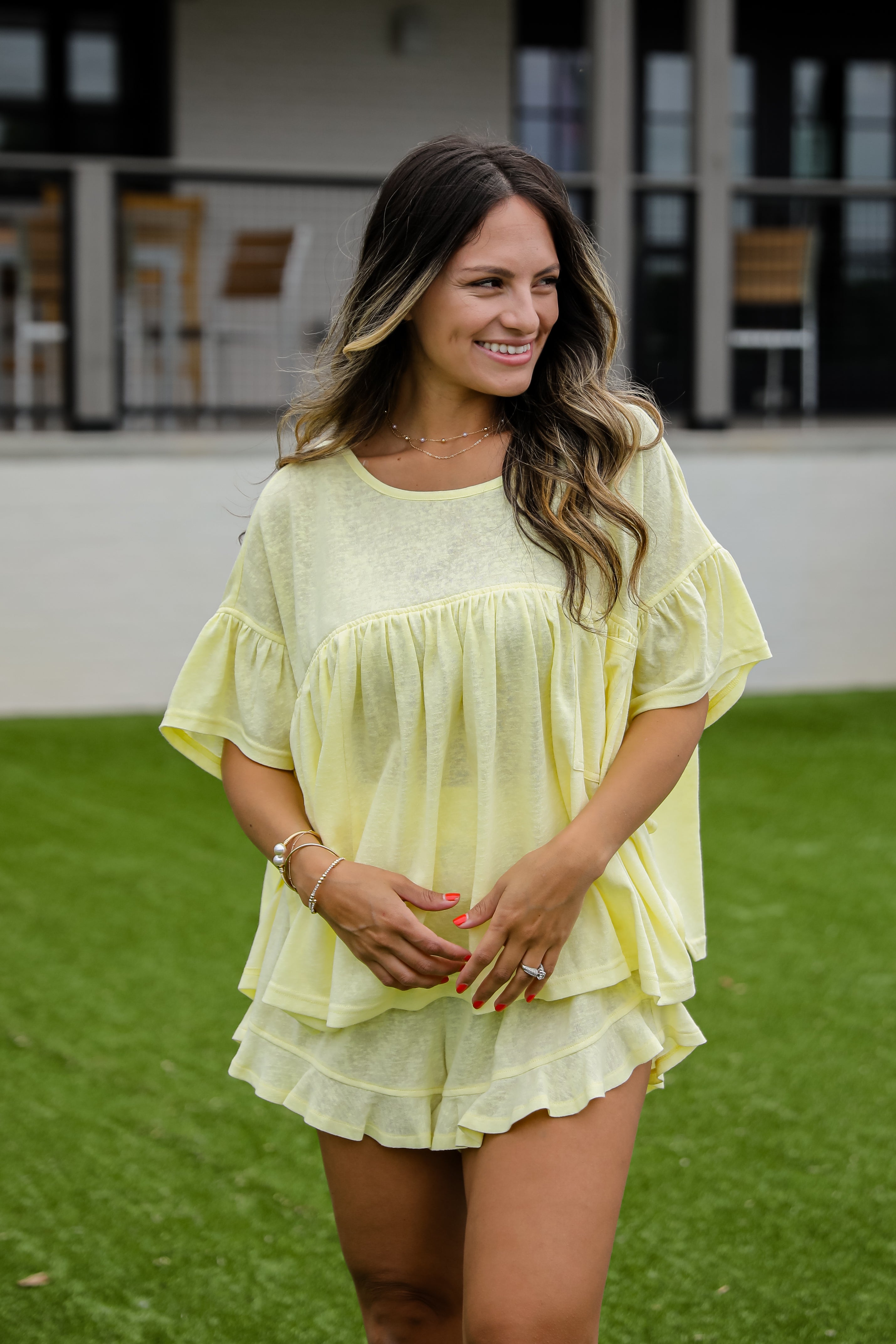 Cute, comfy, and effortlessly laid-back—the You're Mine Ruffle Shorts are the perfect blend of casual and feminine! These lightweight, breezy shorts feature a flowy fit and flouncy ruffle hem that adds just the right amount of feminine flair. The elastic waistband ensures a comfortable, flexible fit—perfect for all-day wear. Whether you're lounging, brunching, or exploring the town, these shorts pair effortlessly with your favorite tanks, tees, or blouses for a look that’s cute, comfy, and ready for anything! Available in 2 colors.