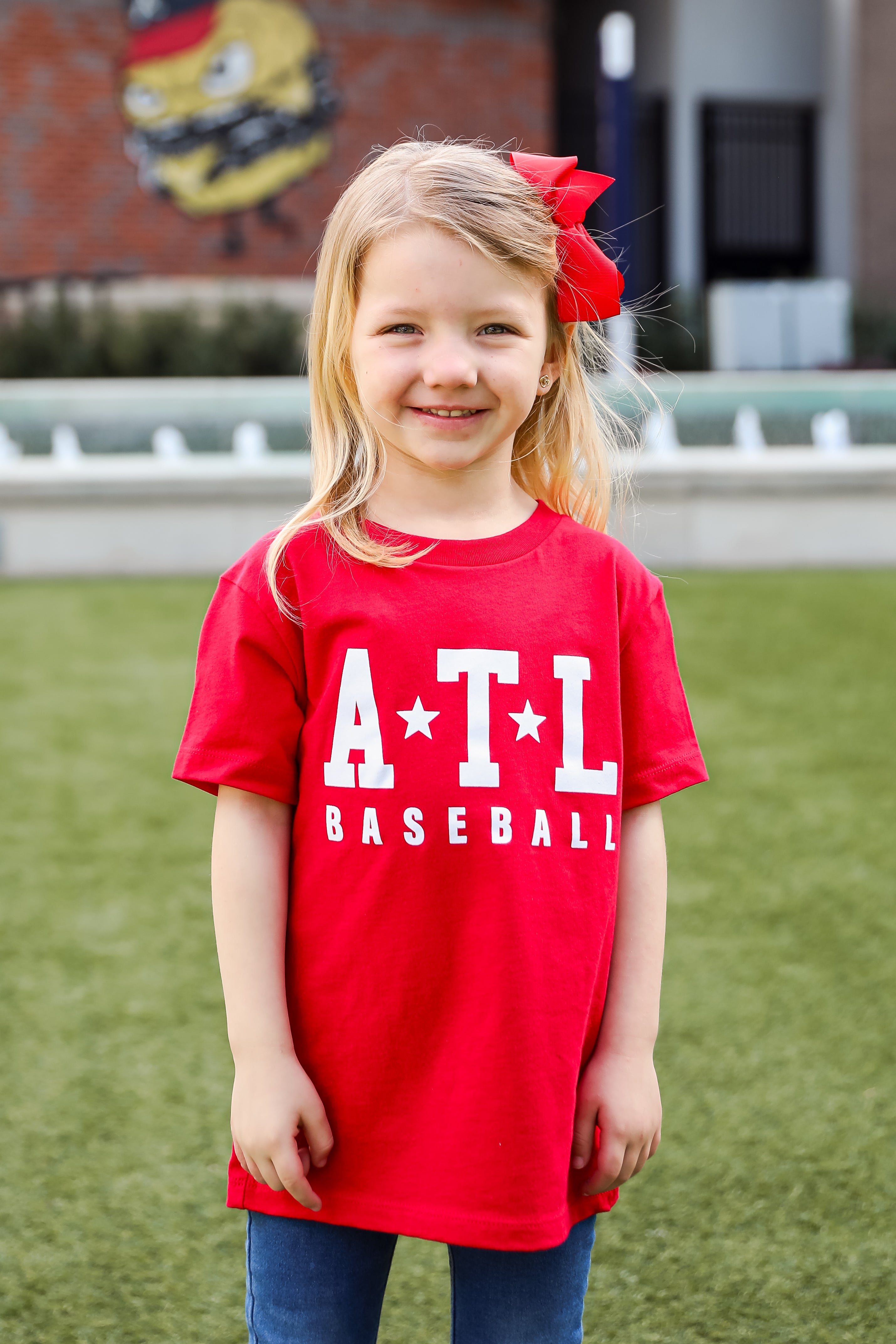 If your little ones are baseball fans, the Youth Red ATL Star Baseball Tee was made just for them! This cute tee is designed with a soft and stretchy knit. It features a crew neckline, short sleeves, a relaxed fit, and the words "ATL Baseball" on the front.