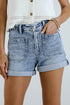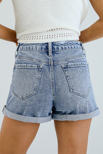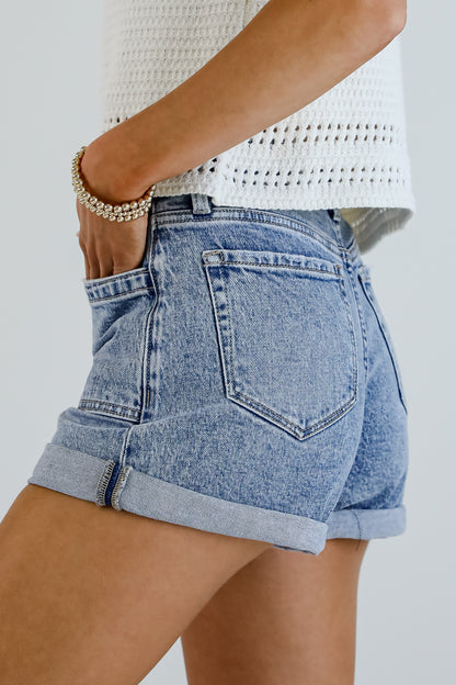 Zoey Medium Wash High-Rise Cuffed Denim Shorts
