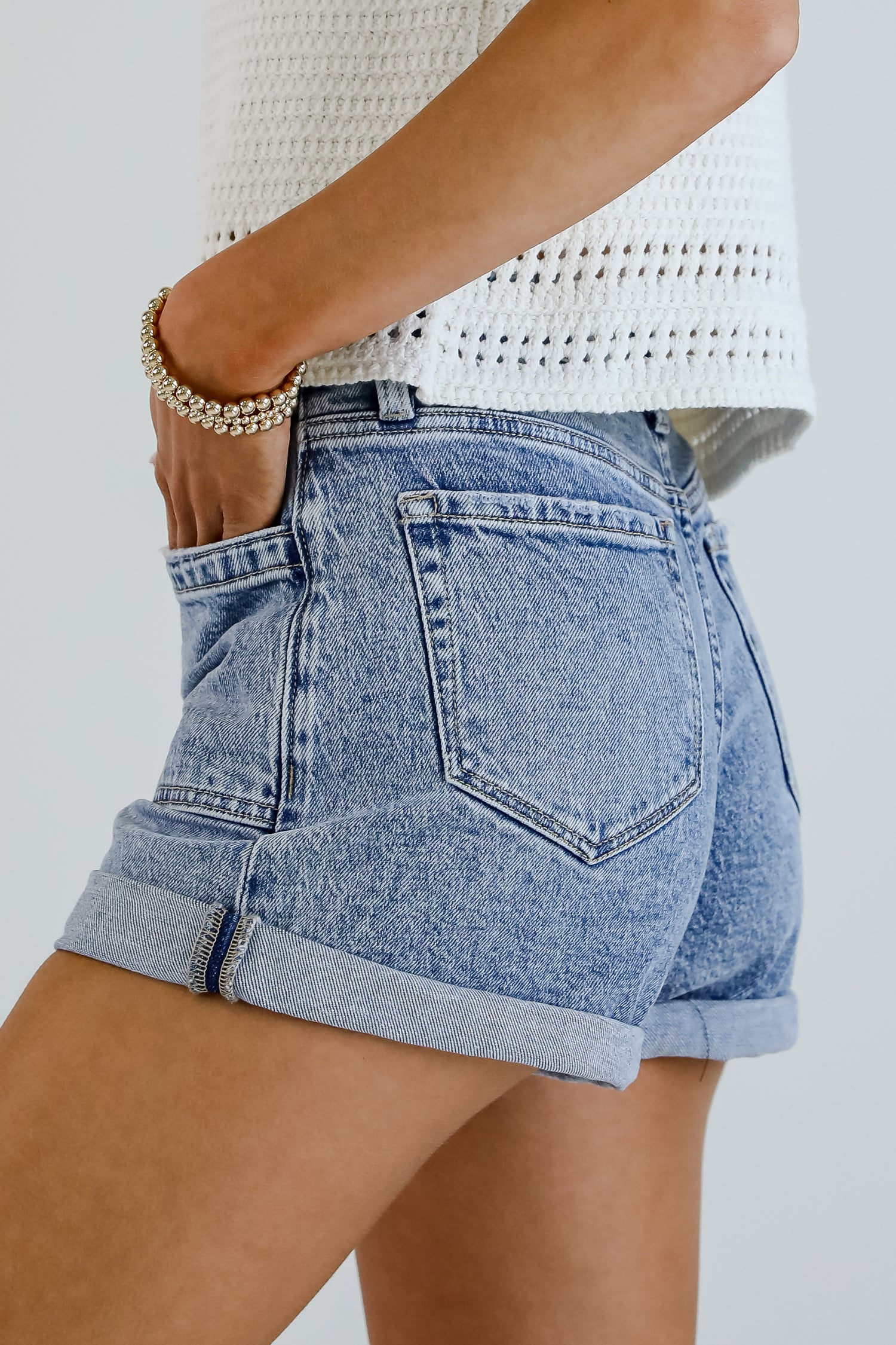 Classic, cute, and ready for sunshine — the Zoey Medium Wash High-Rise Cuffed Denim Shorts are a warm-weather essential! Featuring a timeless medium wash and a flattering high-rise fit, these shorts are designed to hug your waist and highlight your shape in all the right ways. The cuffed hem adds a clean, polished touch, making them perfect for dressing up or down. Pair them with a tank and sandals for a casual day out or throw on a blouse and wedges for a chic summer look!